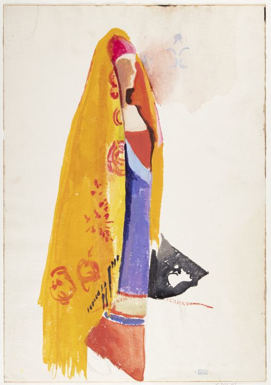 Woman with orange shawl