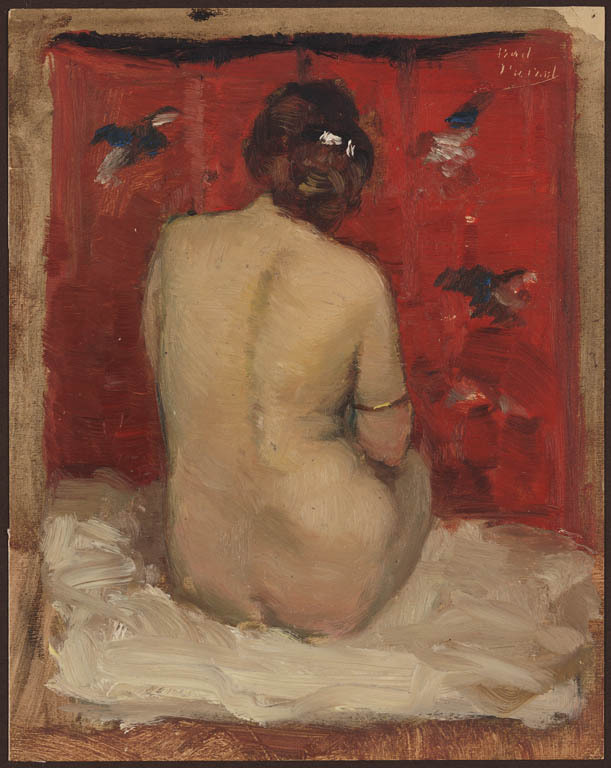 Zittende vrouw, de haren kammend