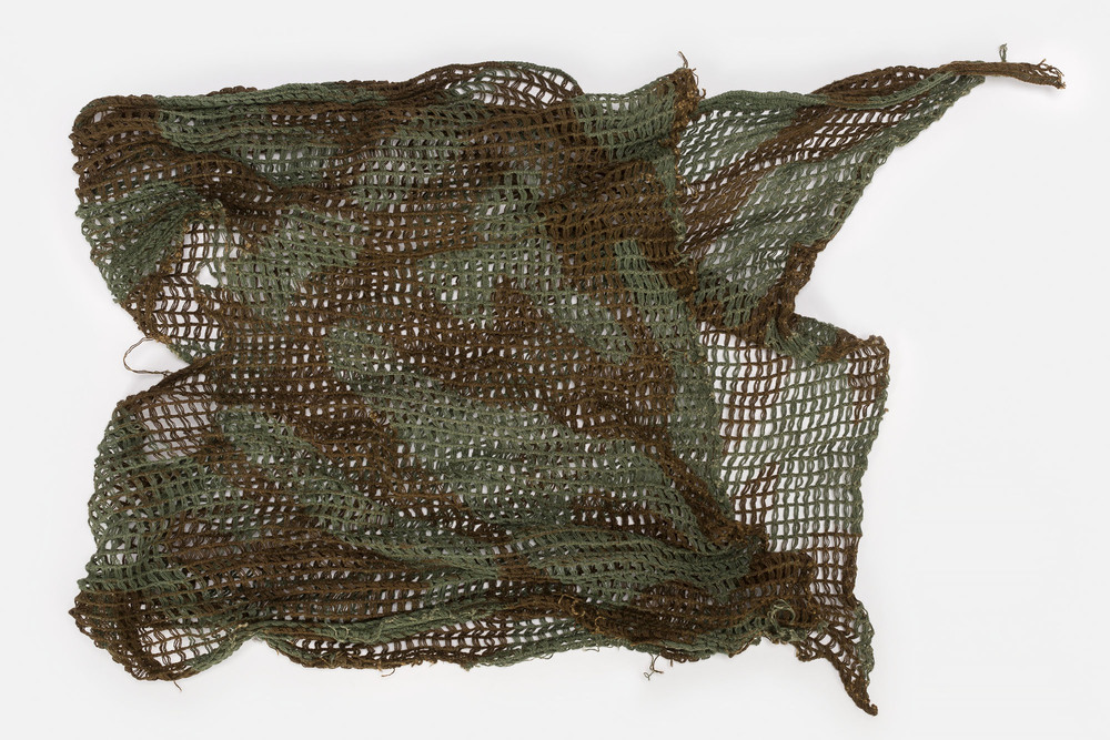 Gelaatsnet van bruingroen geweven katoen met fijne m...