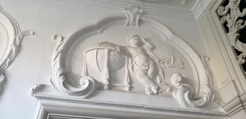 Stucwerk allegorie op de architectuur/meetkunde, ast...