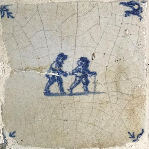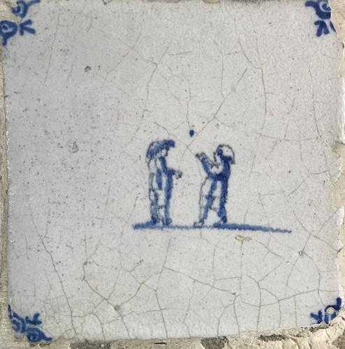 Tegel van aardewerk met tinglazuur voorstellende zui...