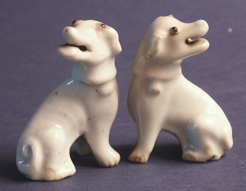 2 wit porseleinen hondjes, Blanc de Chine.