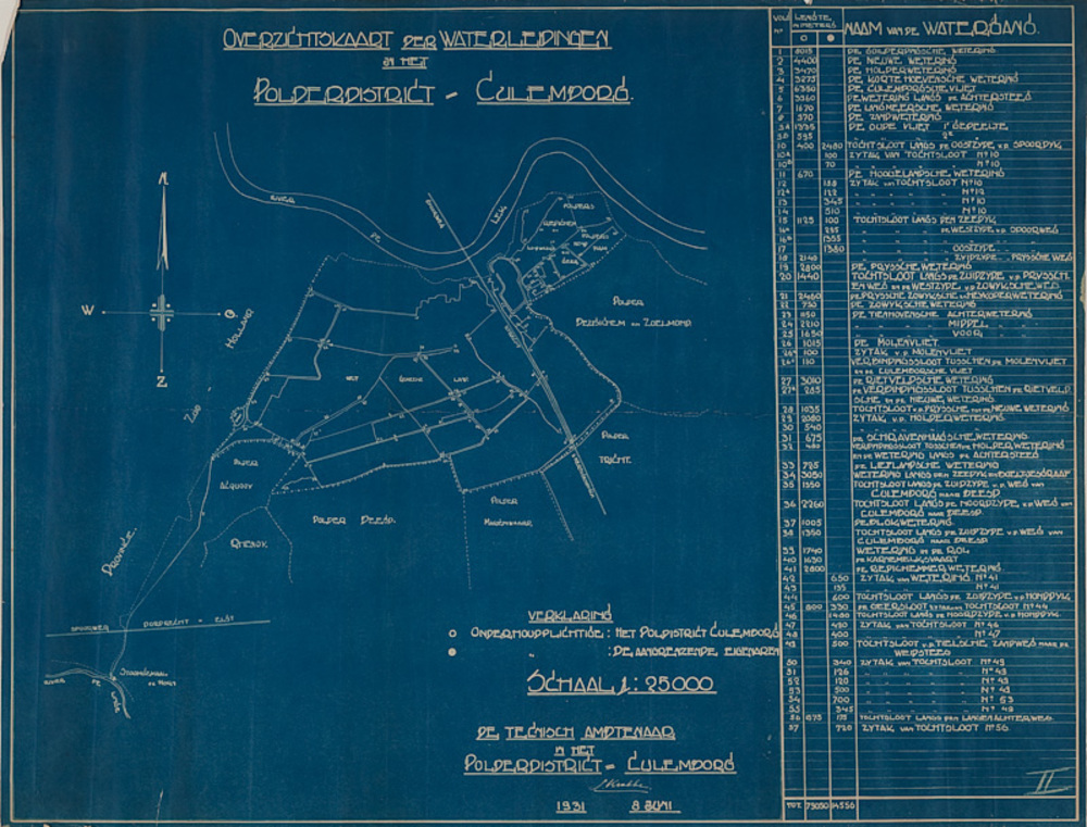 Kaart der waterleidingen in het polderdistrict Culem...