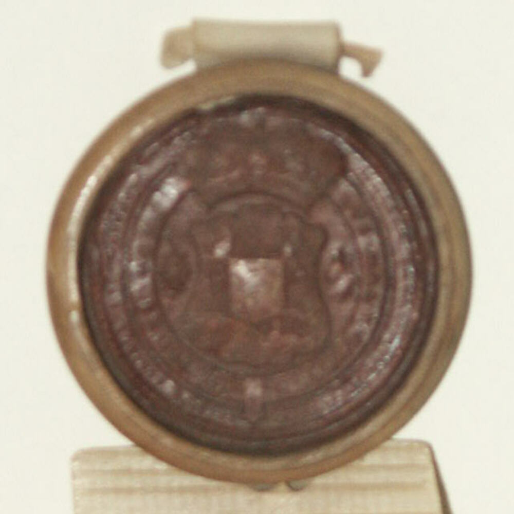 Lakzegel in houten doos.