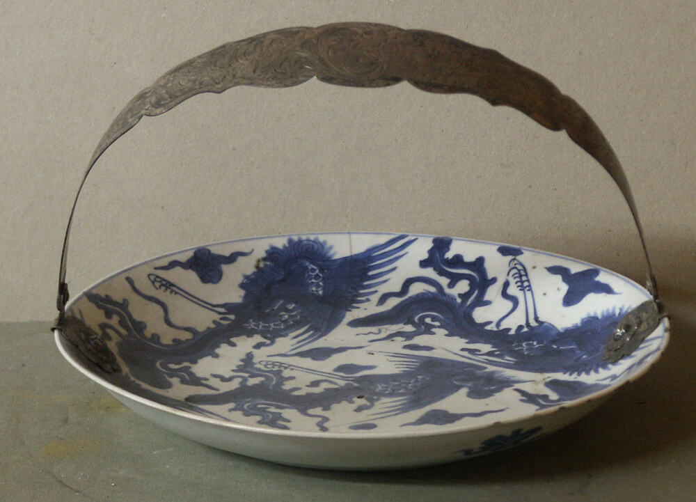 schaal van chinees porselein met zilveren beugel. K'...