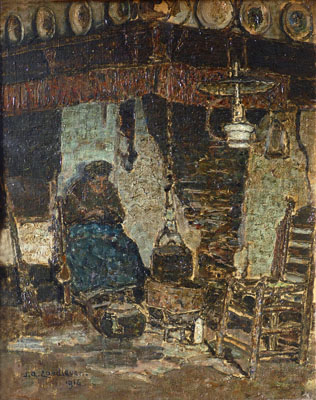 Brabants binnenhuis met vrouw in schouw