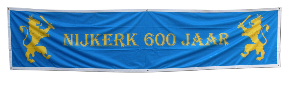 Vlag of spandoek met het opschrift ‘Nijkerk 600 jaar’