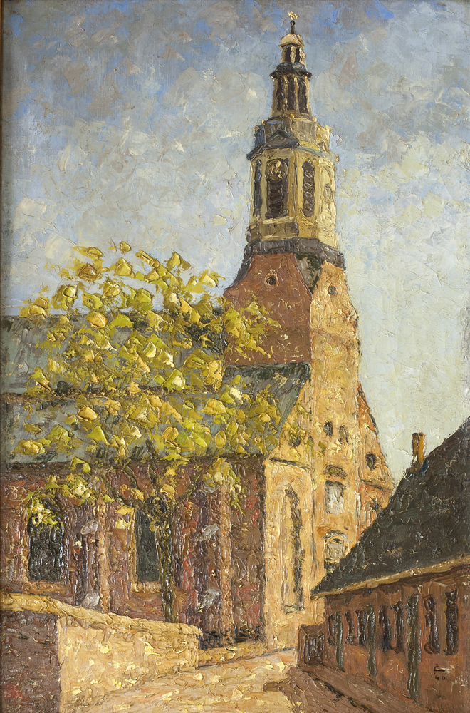 Schilderij met daarop de Grote Kerk van Nijkerk, 1940