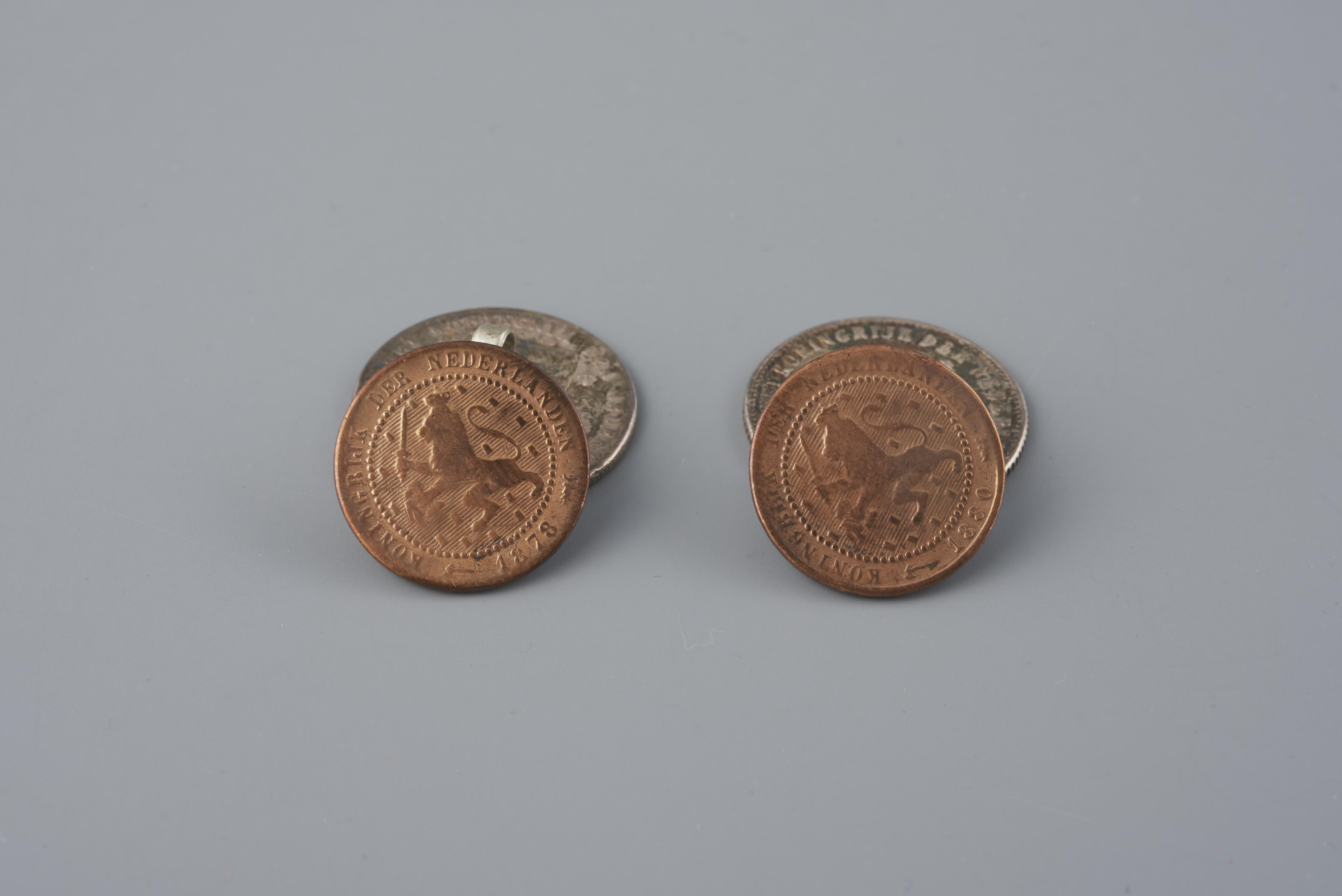 Paar klepstukken van munten, Volendam, circa 1905-1940