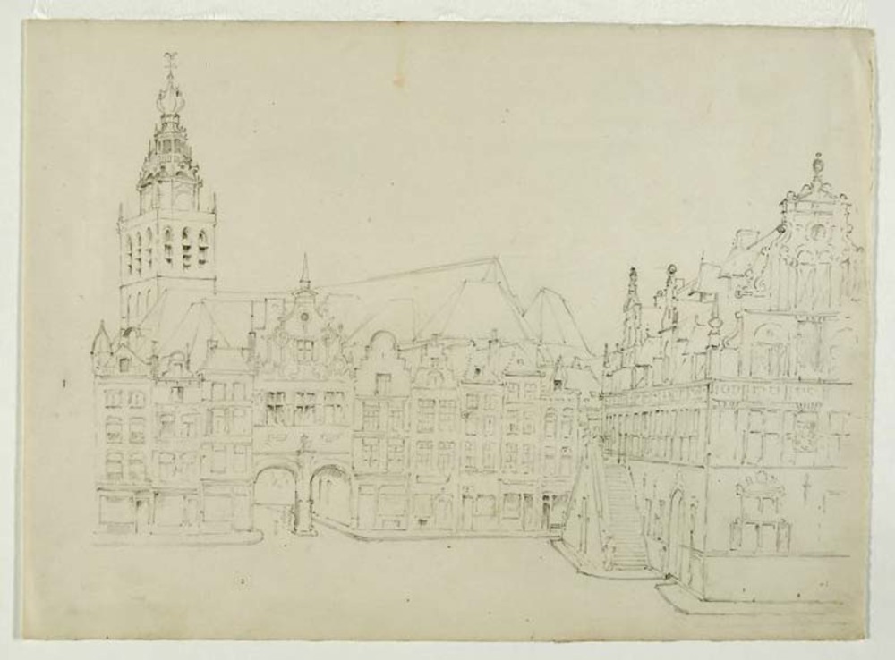 De Waag en de huizenrij aan de westzijde van de Grot...