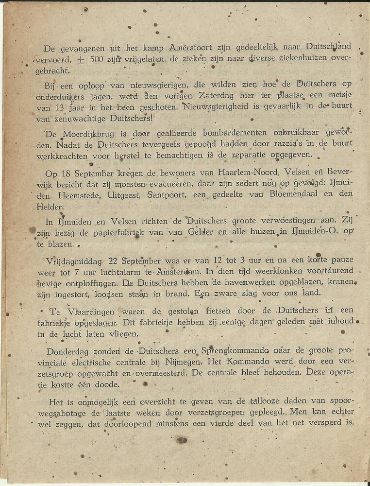 Oranjebulletin september 1944 No 4. Uitgave voor Zui...