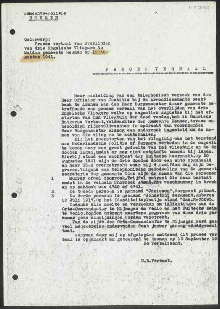 Proces-verbaal van overlijden van drie Engelschen Vl...