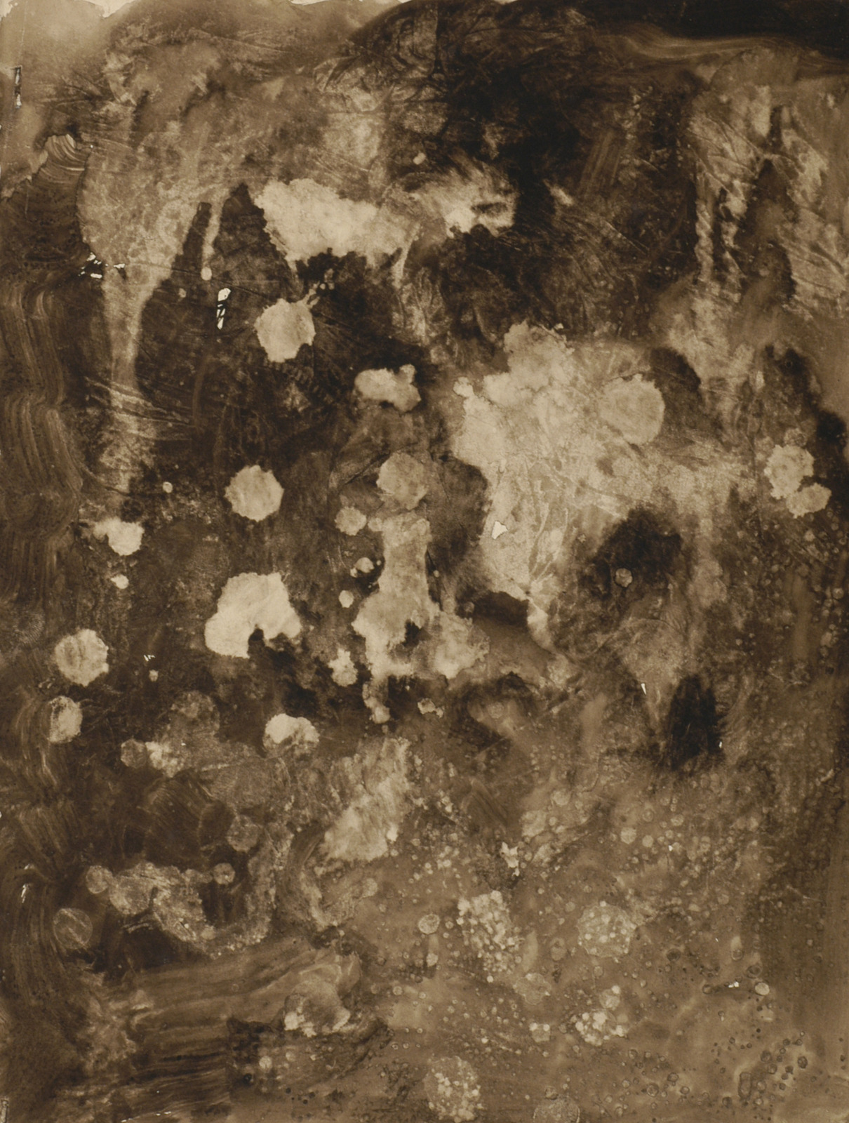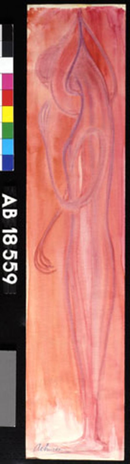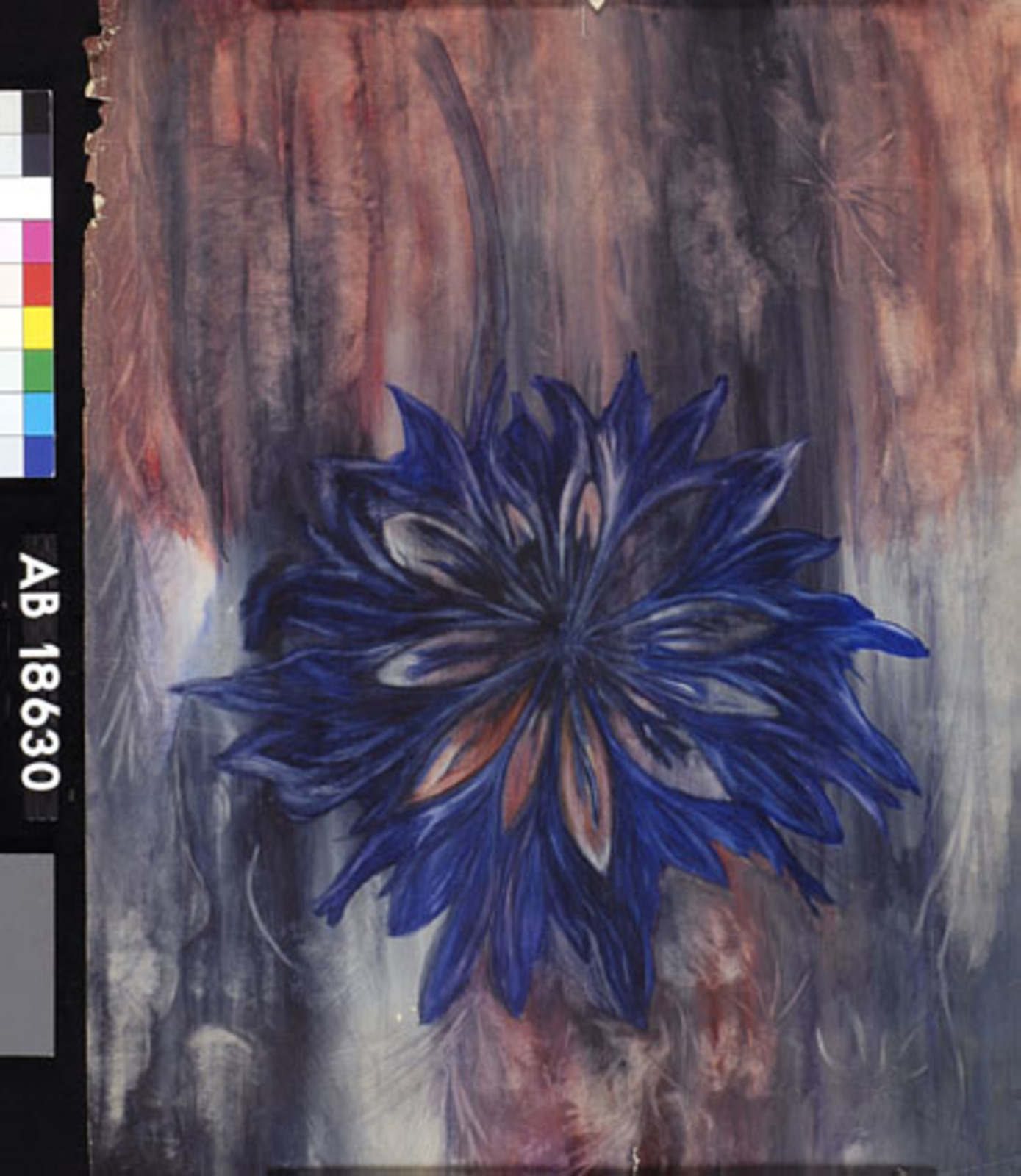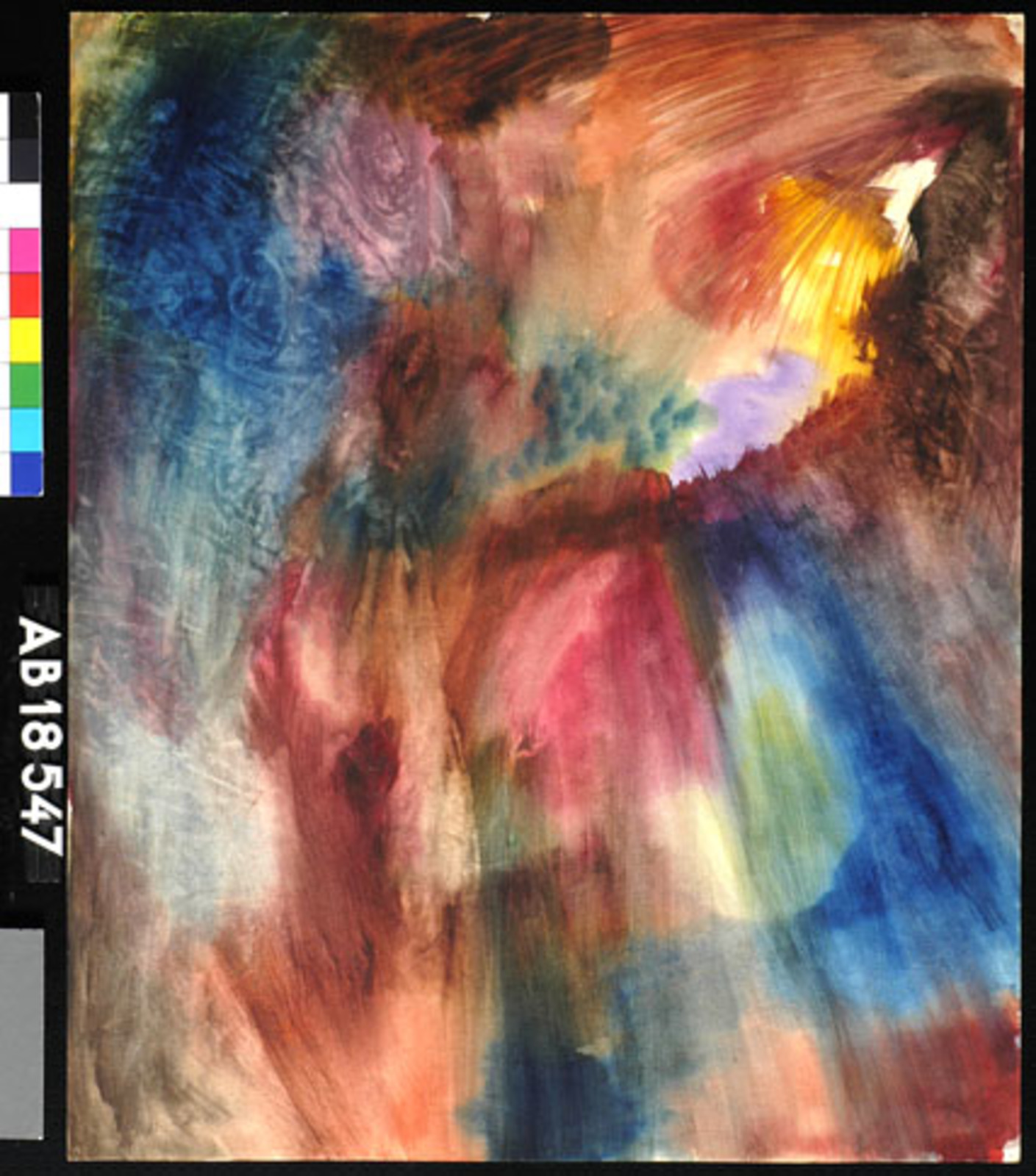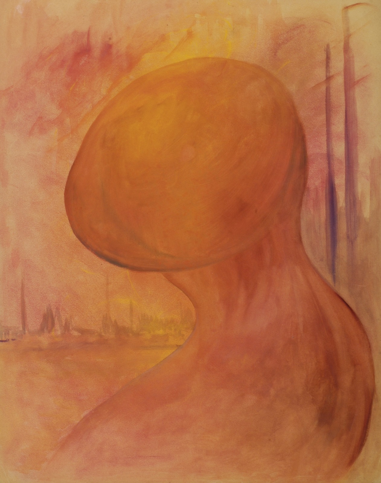 Kleurschets met donkere vorm (kale boom/hand?)