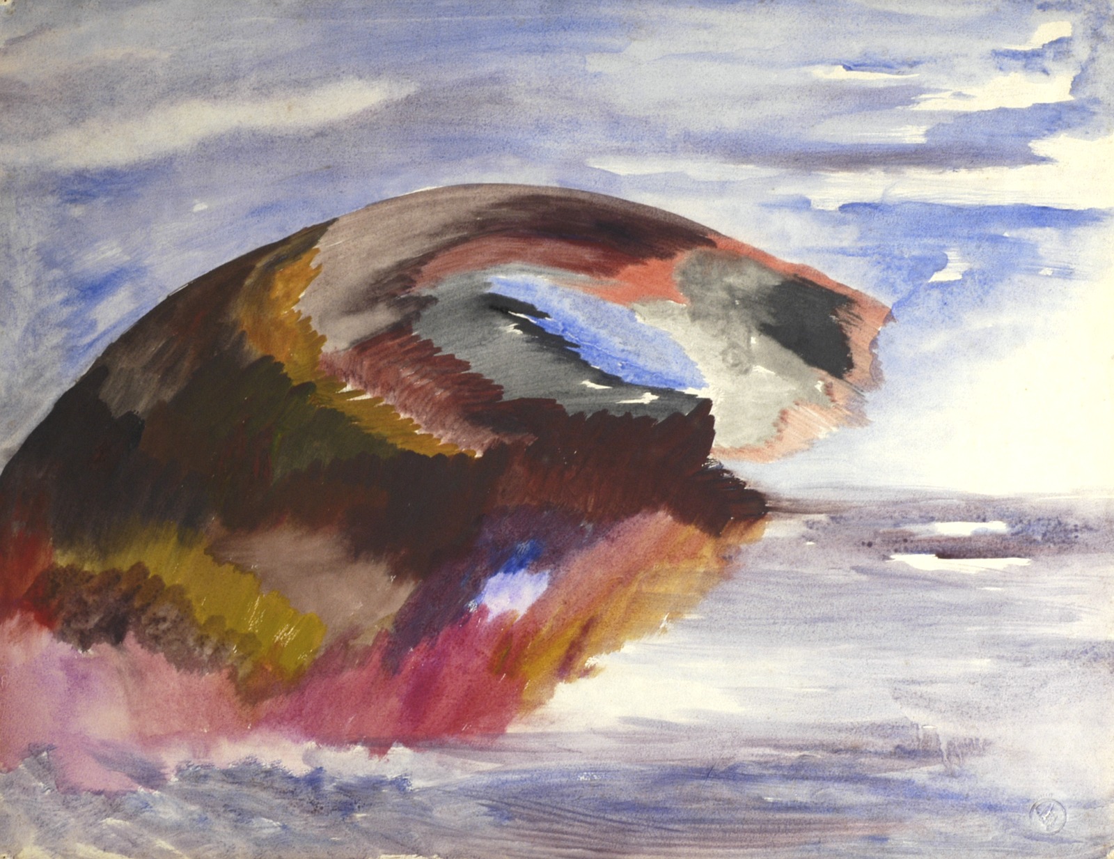 Kleurschets krachtige vorm boven zee