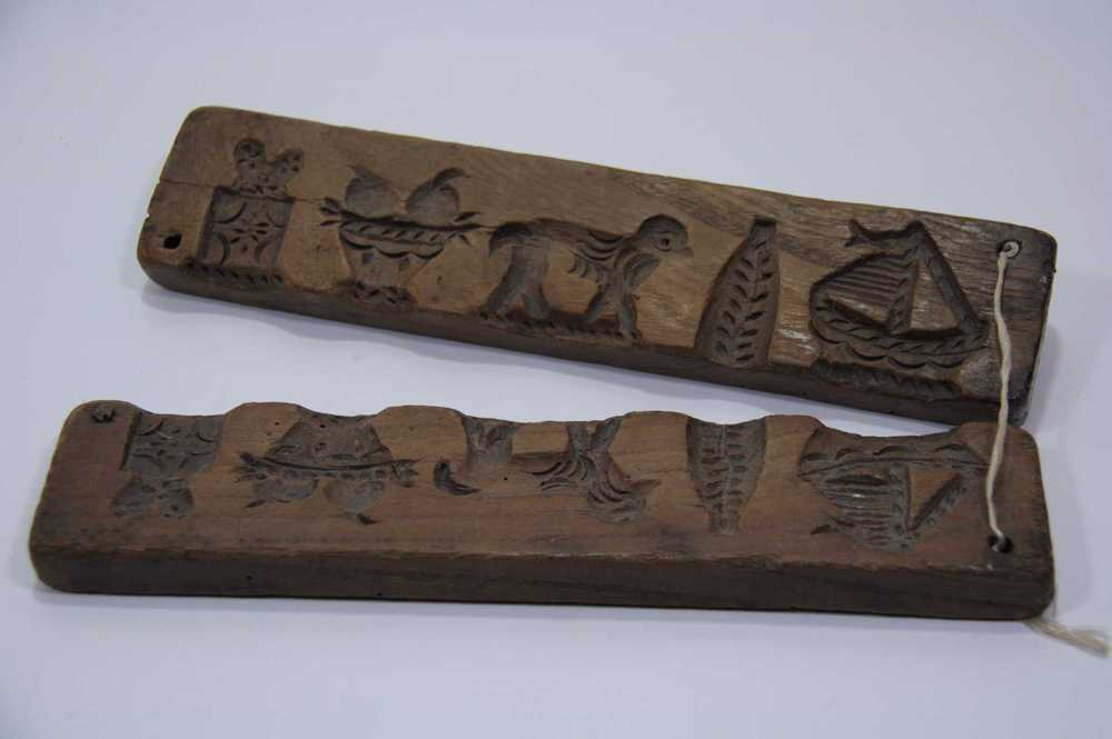 Suikerwerkplank van hout met 5 figuren: een dier, bo...