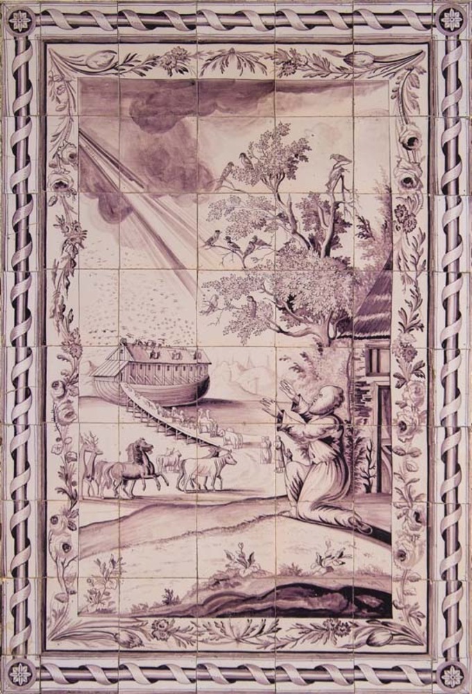 Tegeltableau van keramiek, tinglazuur, voorstellende...