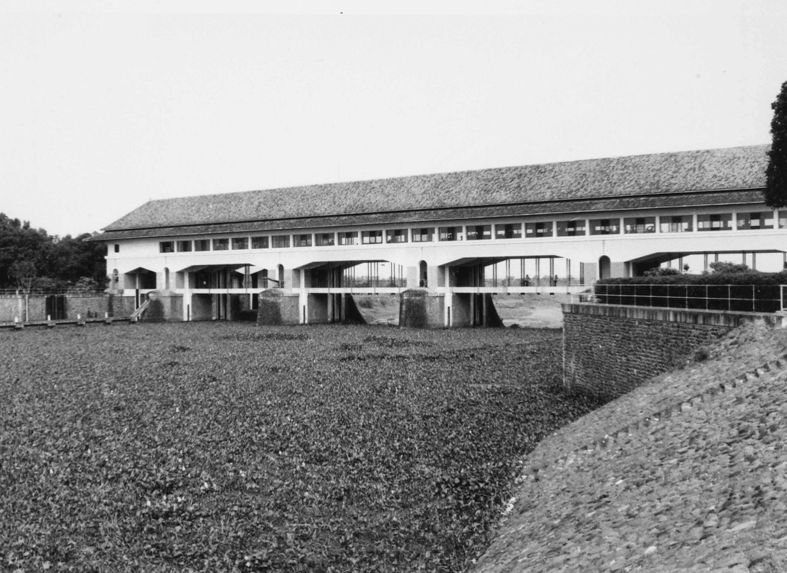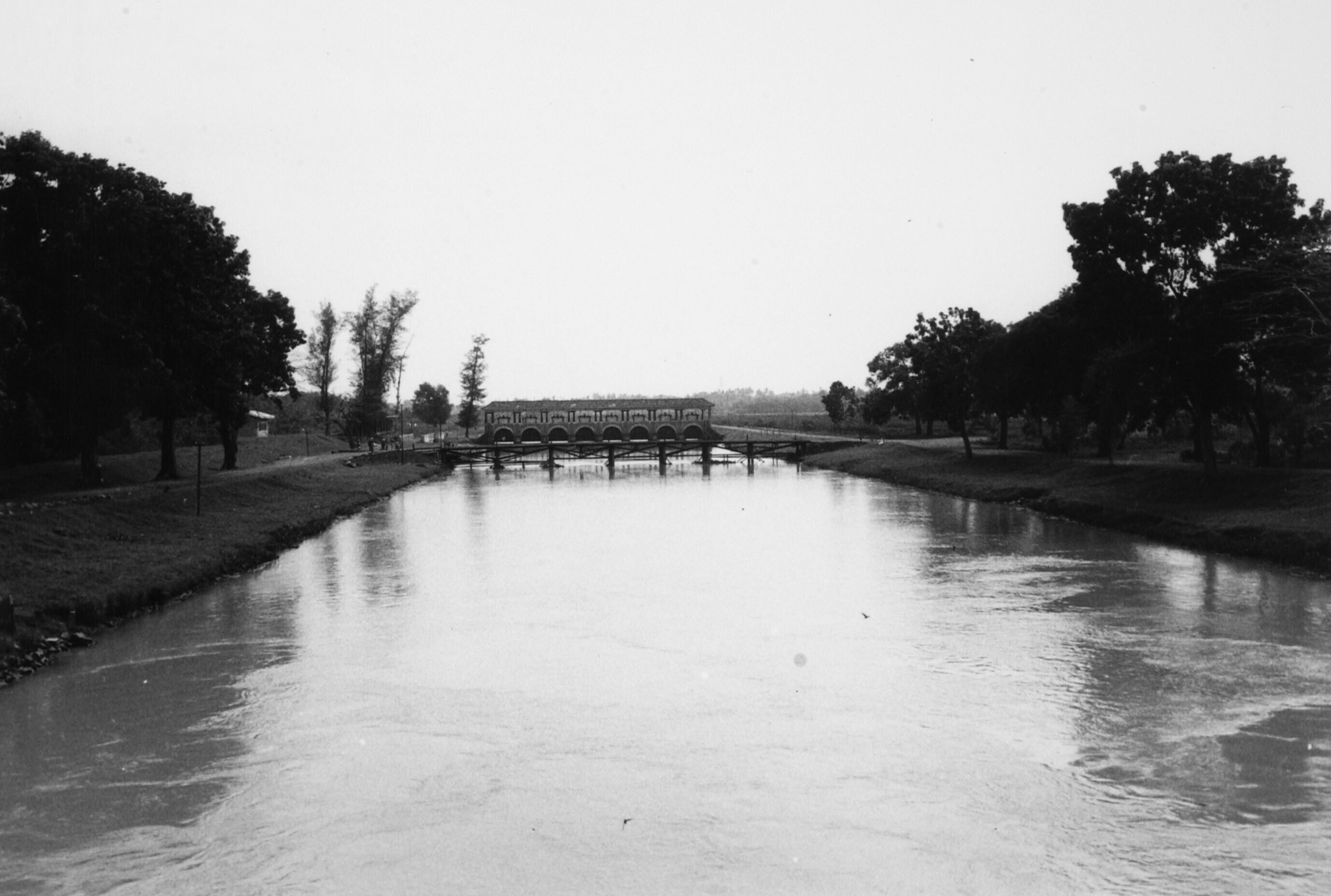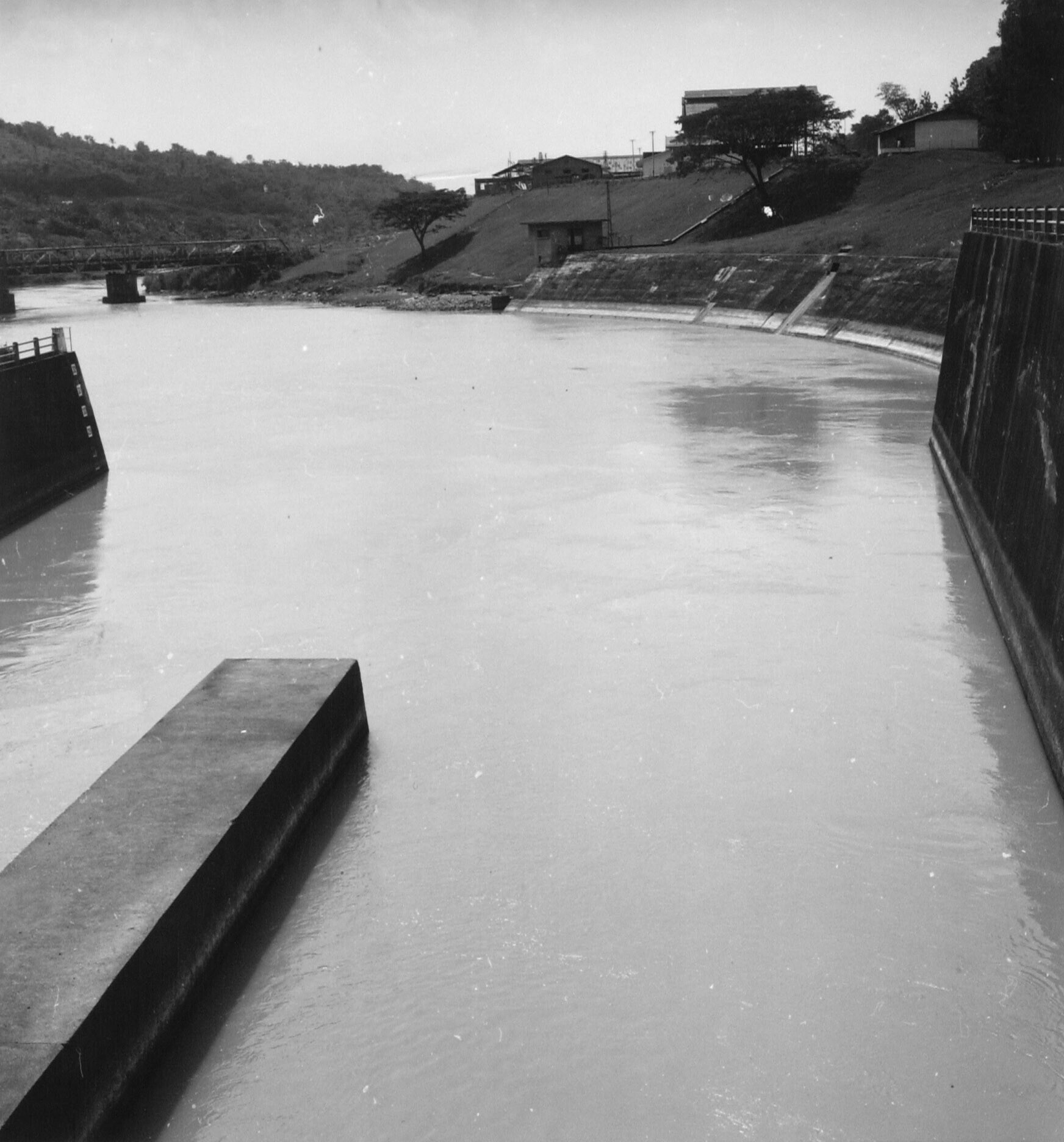 Jatiluhurstuwdam, gezicht vanaf de dam stroomafwaart...