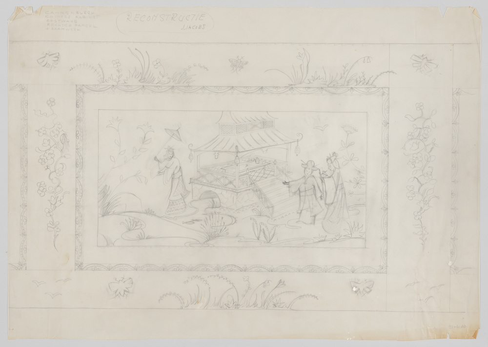 Chinoiserie voorstelling van drie vrouwen in het lan...