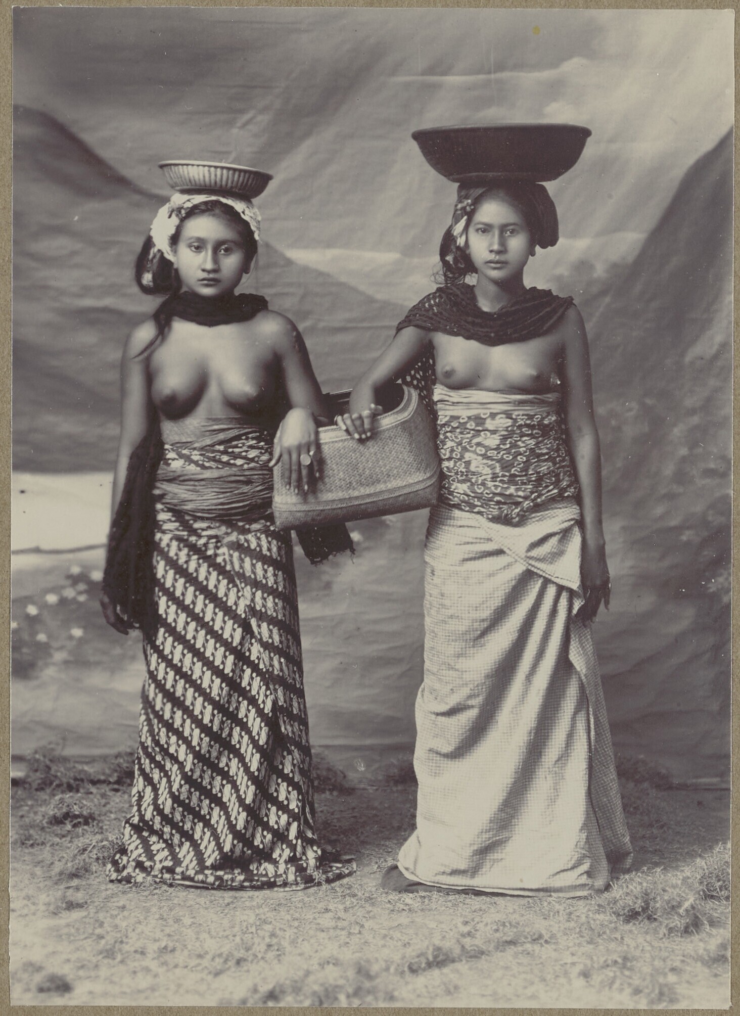 Studioportret van twee jonge Balinese vrouwen