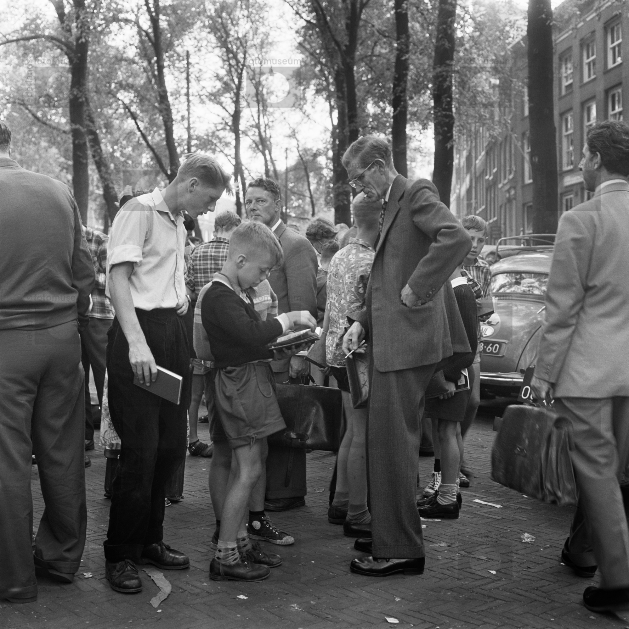 Postzegelmarrkt aan de Nieuwenzijds Voorburgwal, 1957