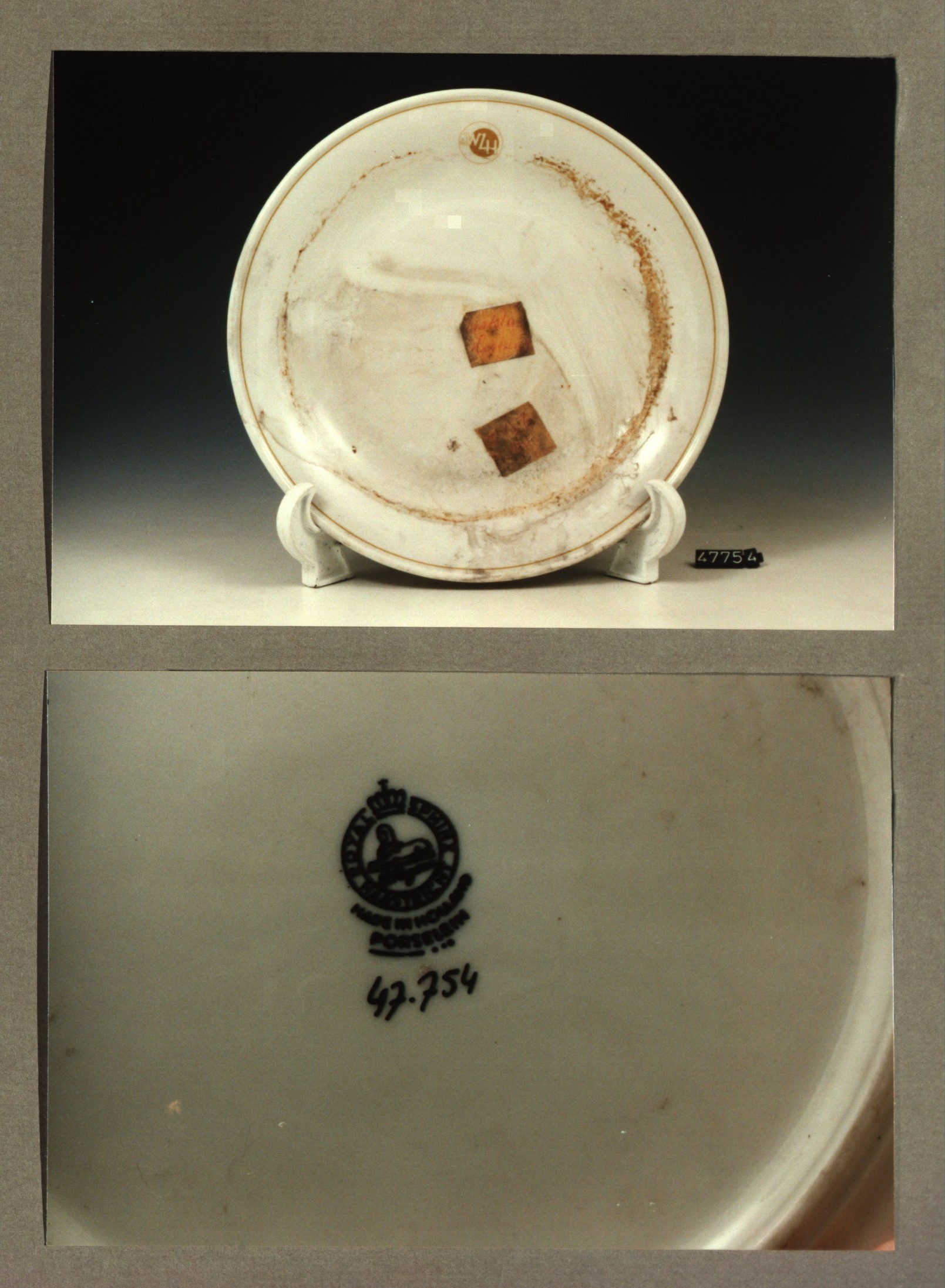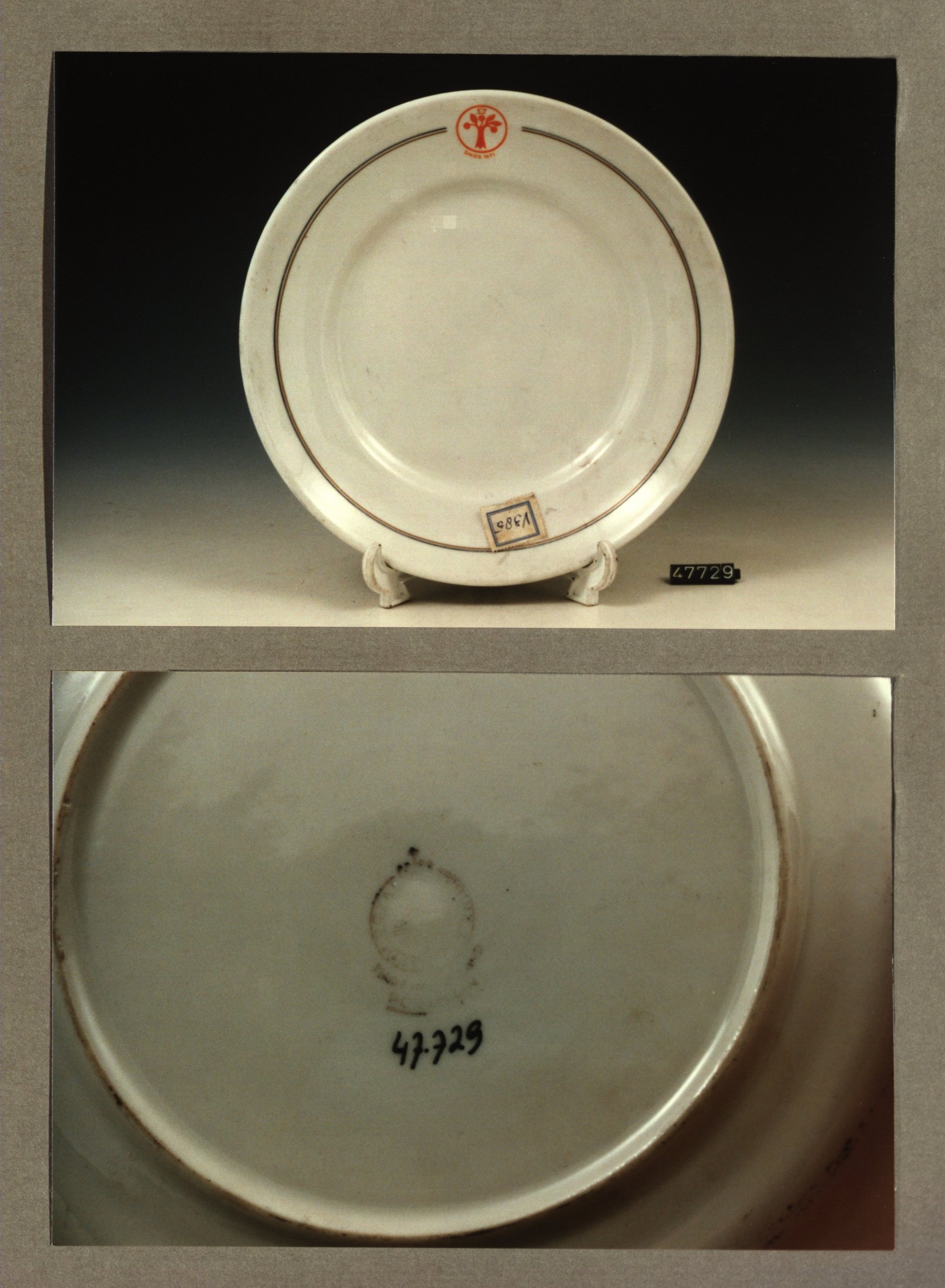 Plat bord, model P met decor Oranjeboom sinds 1671