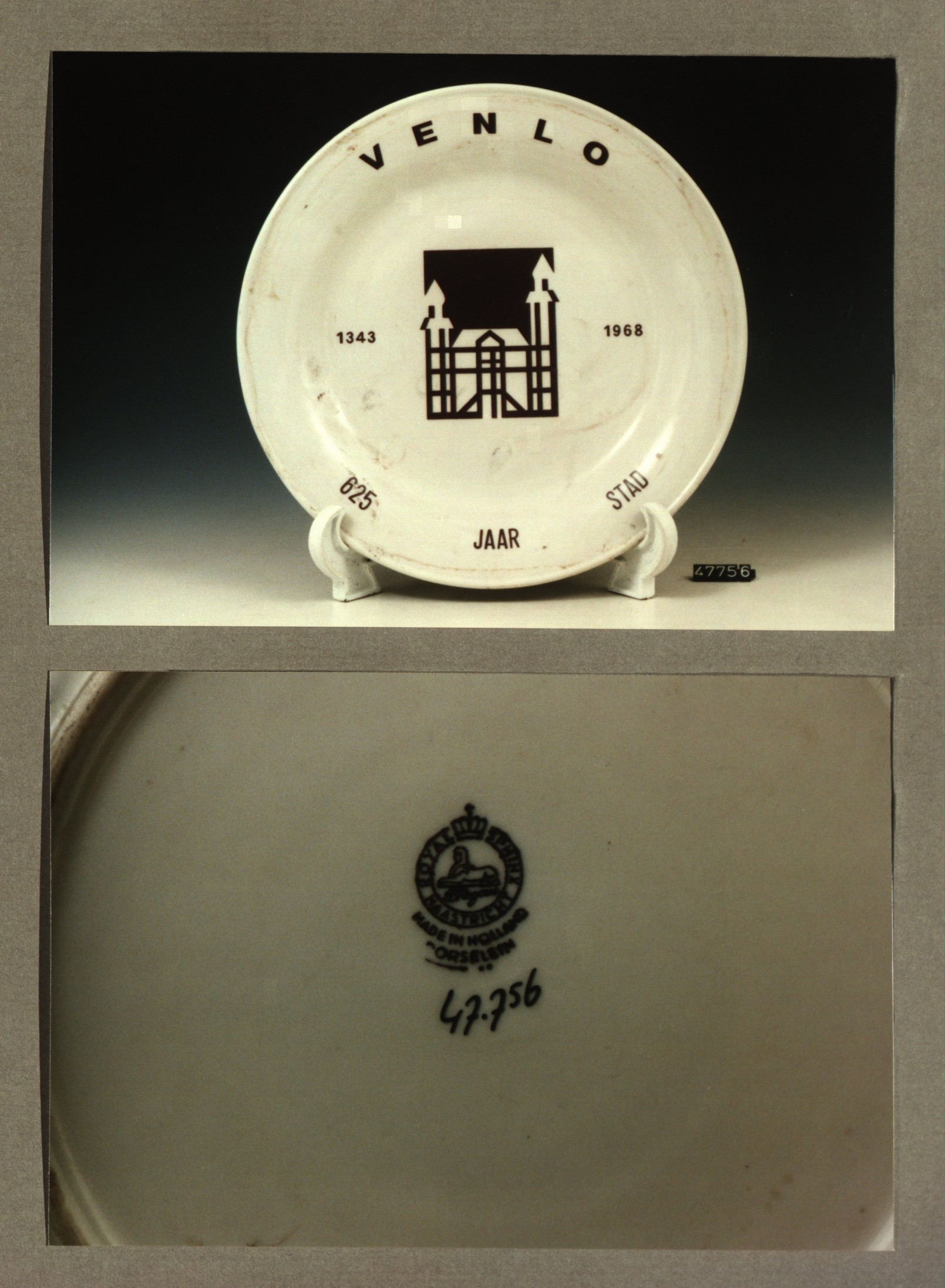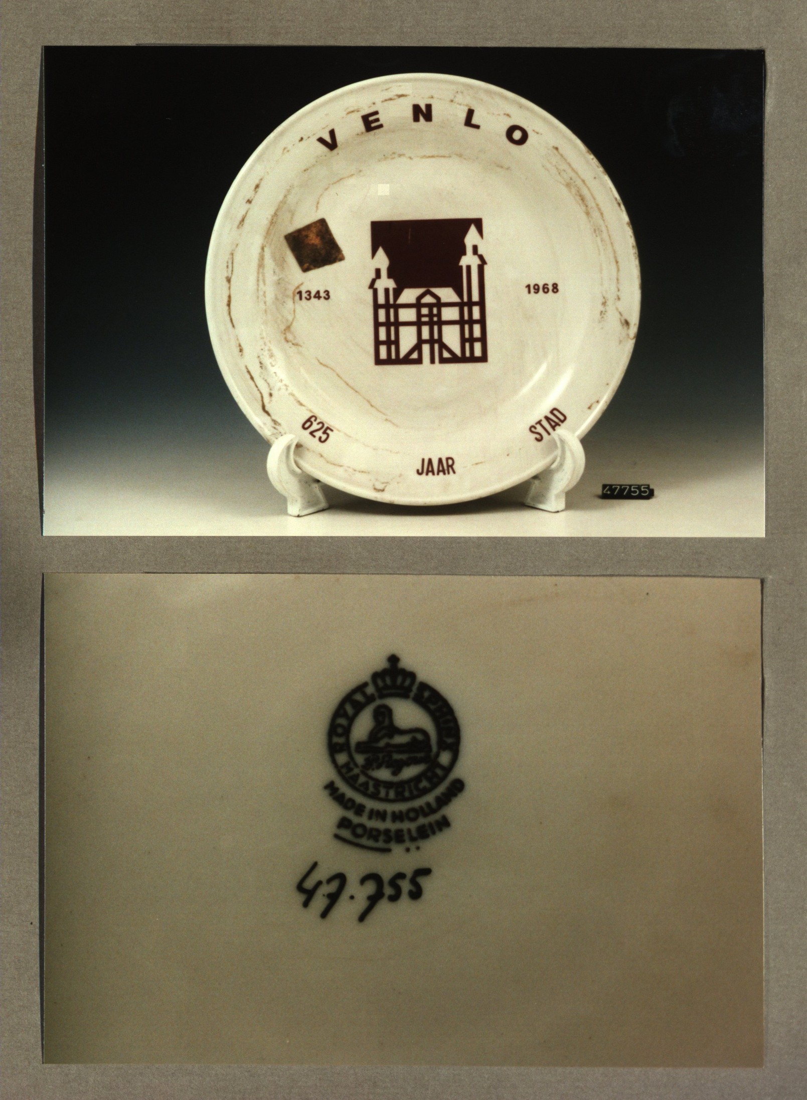 Plat bord, model H met decor Venlo 625 jaar stad 134...