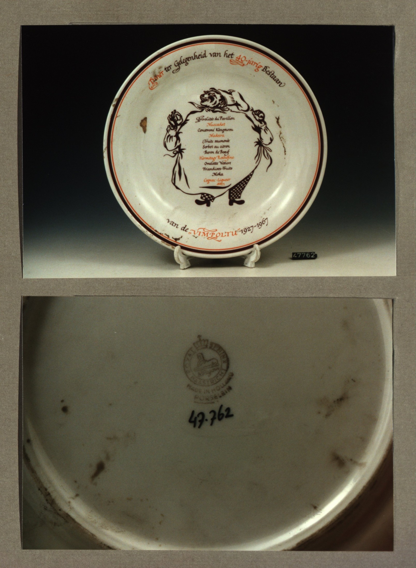 Plat bord, model H met decor Vimpoltu 40 jarig besta...
