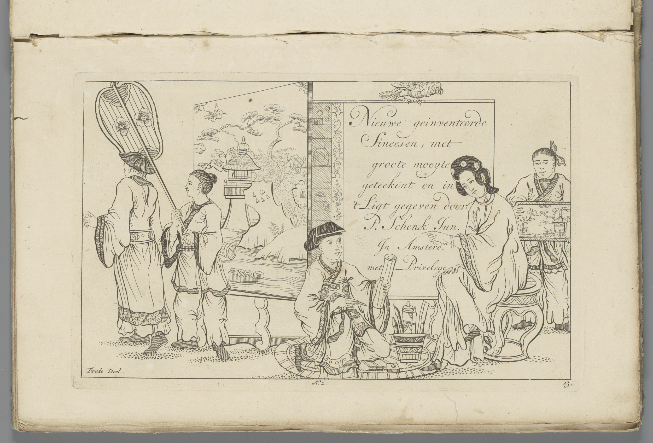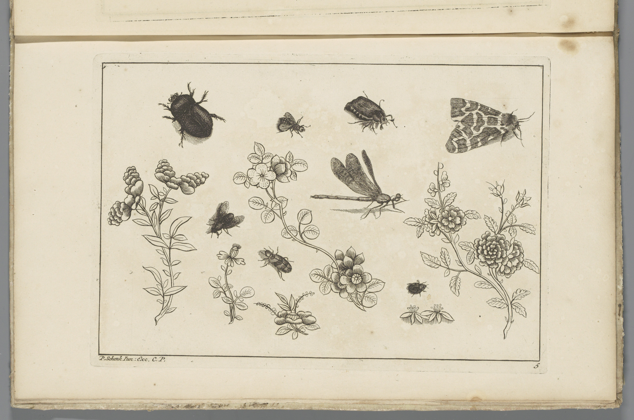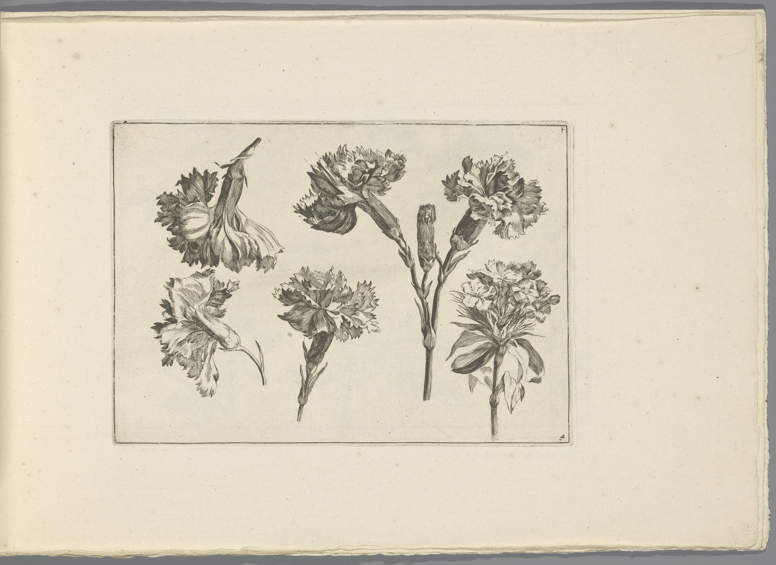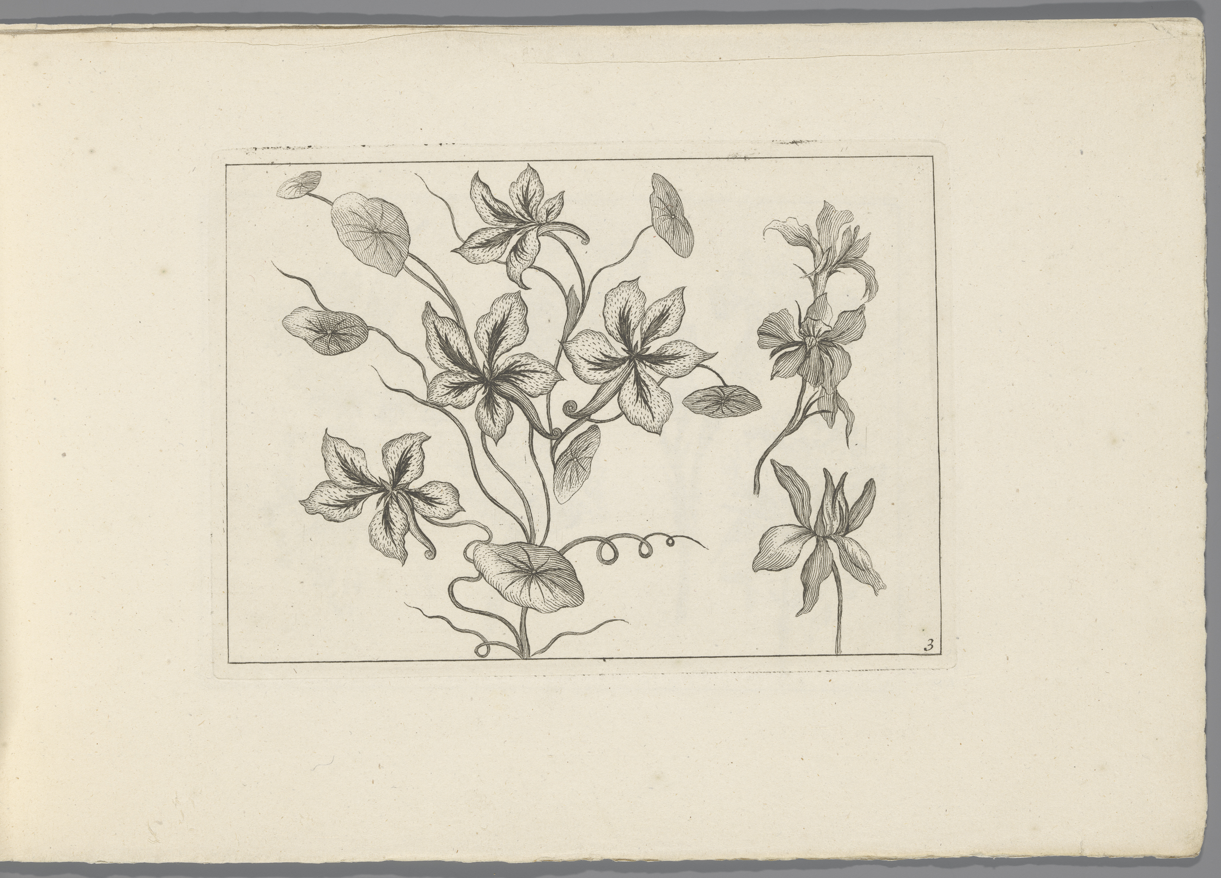 Diverse bloemen, geflankeerd door twee geornamenteer...