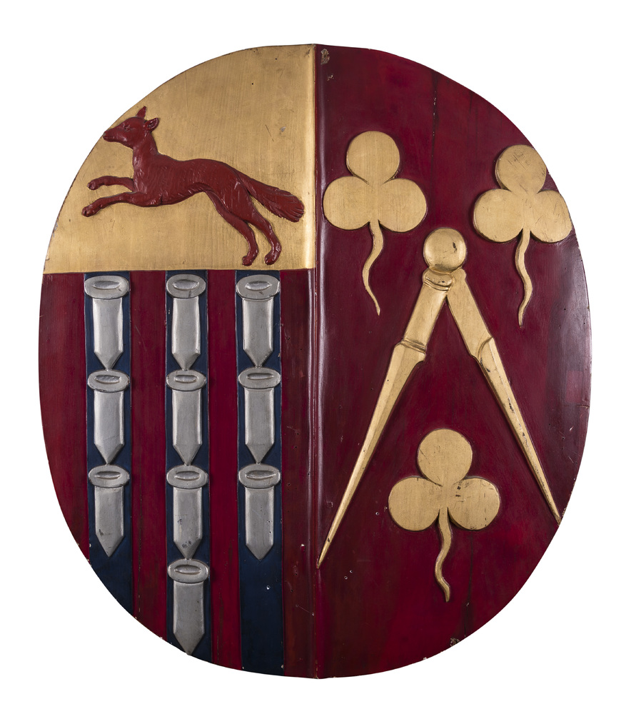 Wapenschild, van hout, van het trouwbord van Burgeme...
