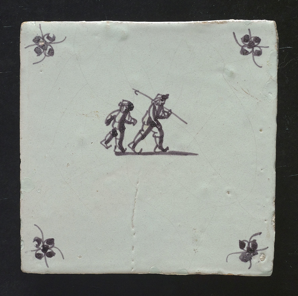 tegel van aardewerk met tinglazuur, voorstellende: h...