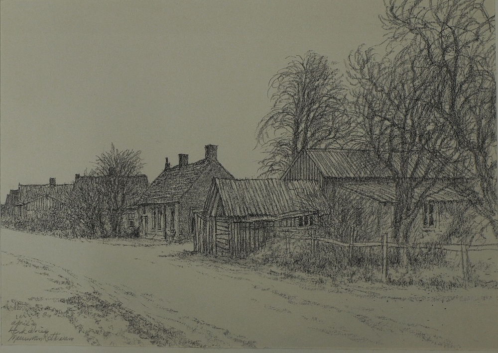 Gezicht op straat, huizen en schuren Kerkdriel. Teke...