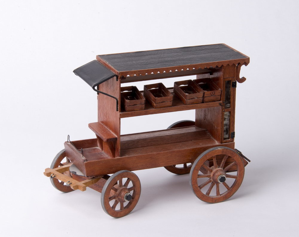 Groentekar, miniatuur, van ijzer, hout en leer, verv...