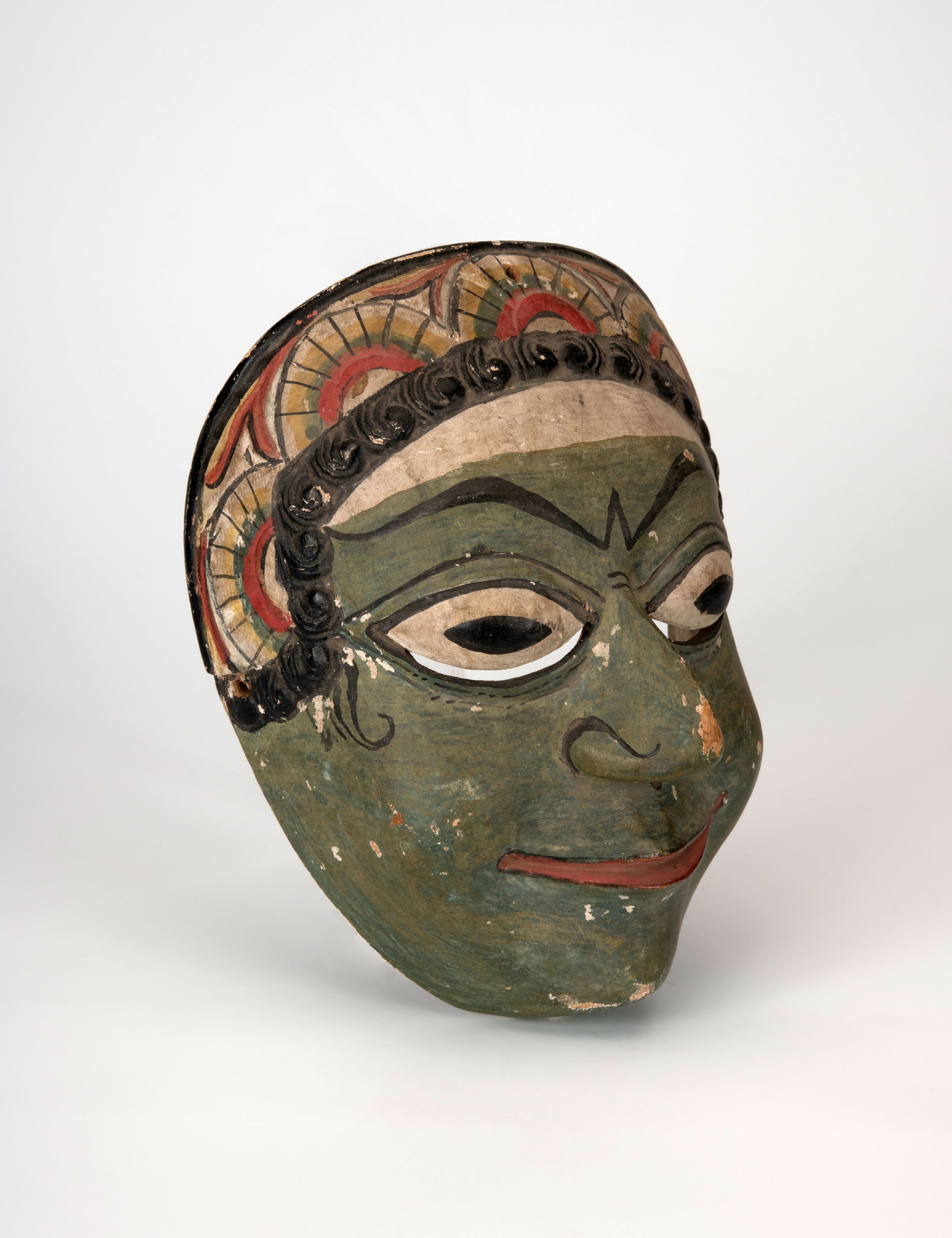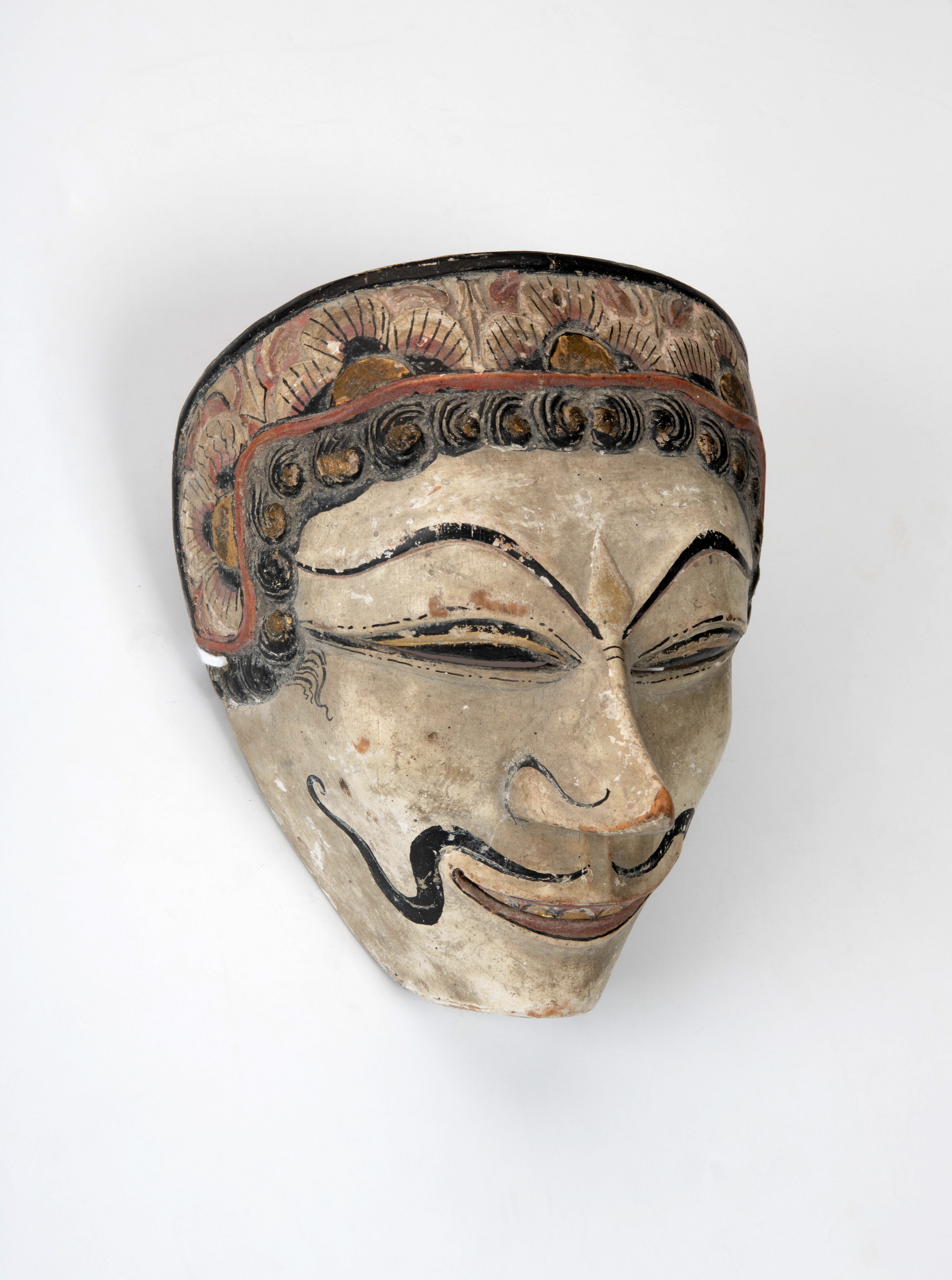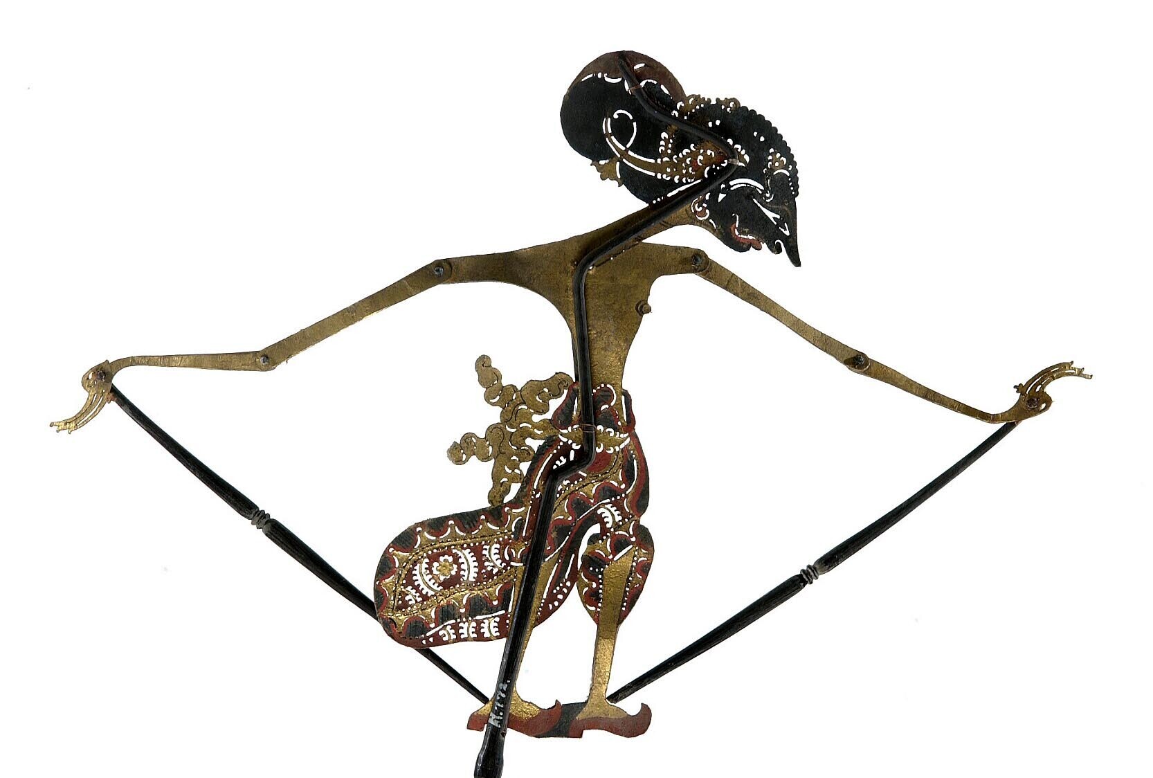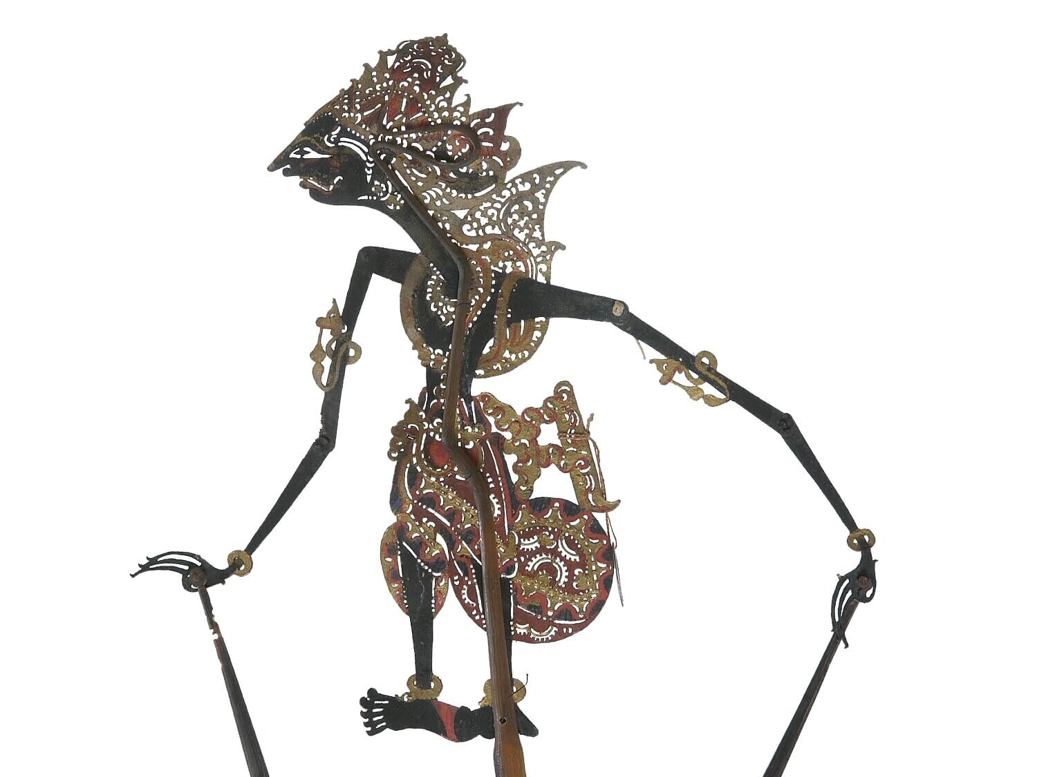 Gesnlen en beschilderd beeld van een wajangfiguur