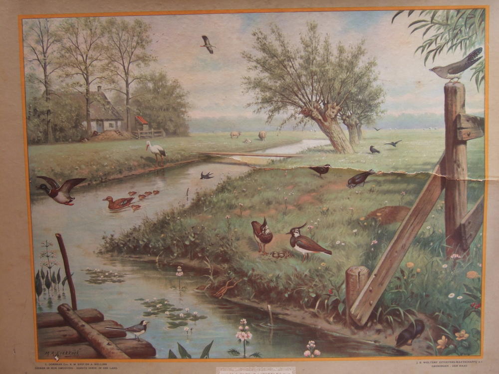 Schoolplaat op karton, "In de Weide" (voorzijde),naa...