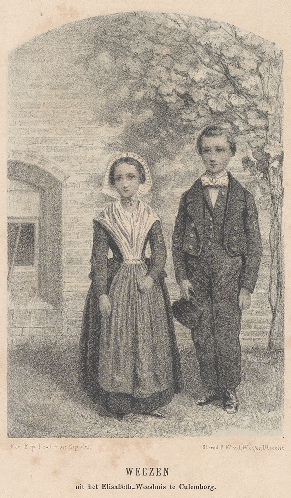Litho, voorstellende meisje en jongen in het kostuum...
