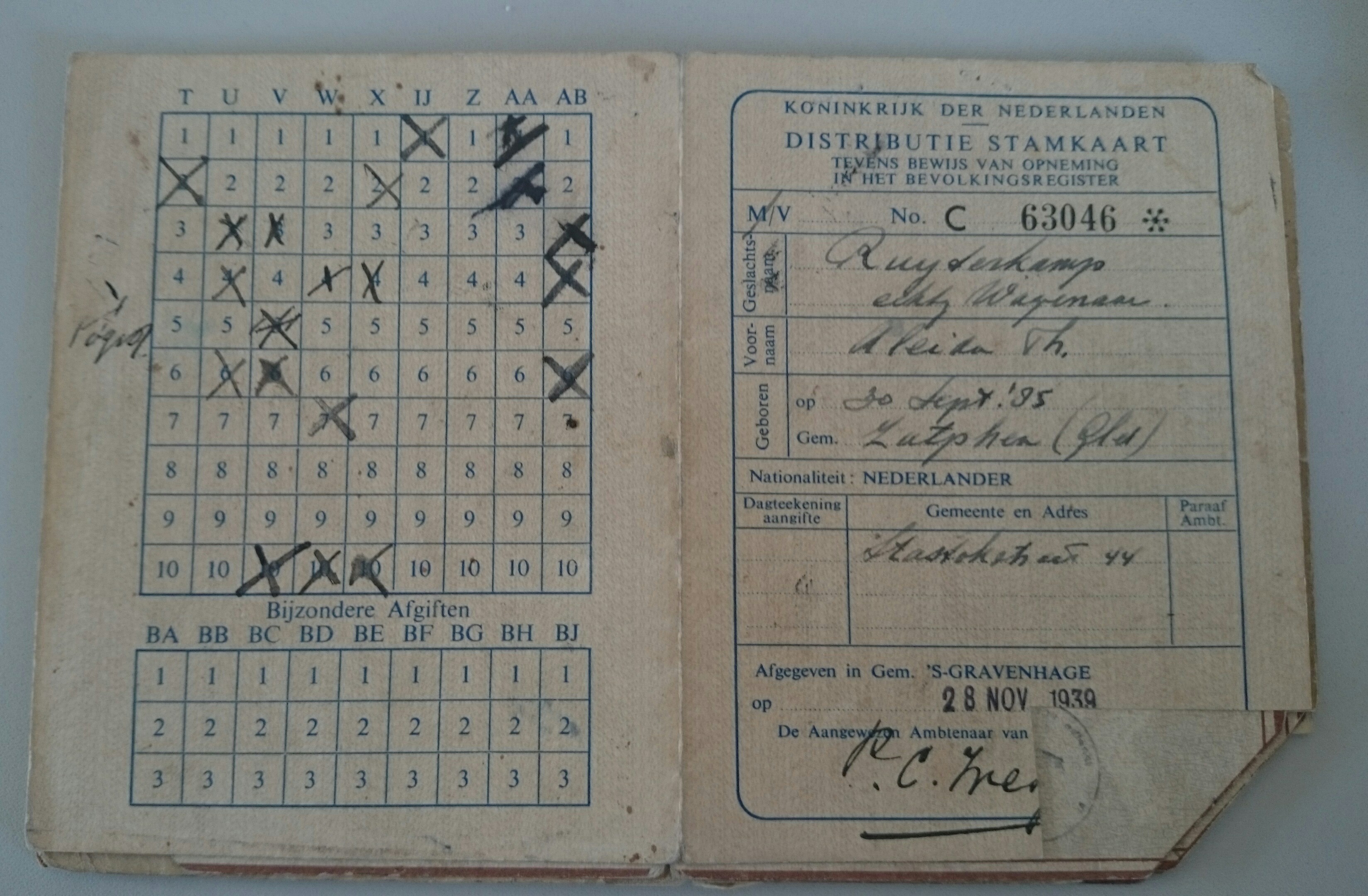 Een distributiestamkaart uit de Tweede Wereldoorlog,...