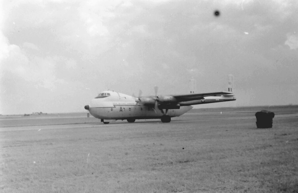 Hawker Siddeley 'Argosy' C-1 XN821/A RAF op de rolbaan.