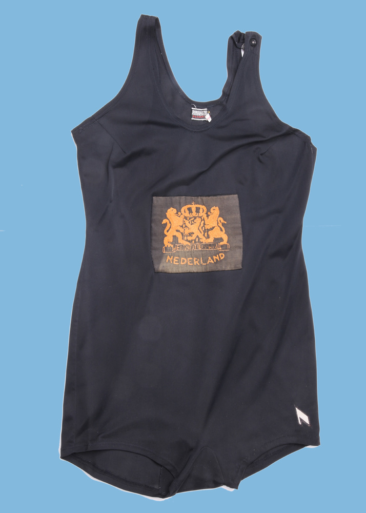 Zwart badpak van een zwemster van het Nederlands Tea...