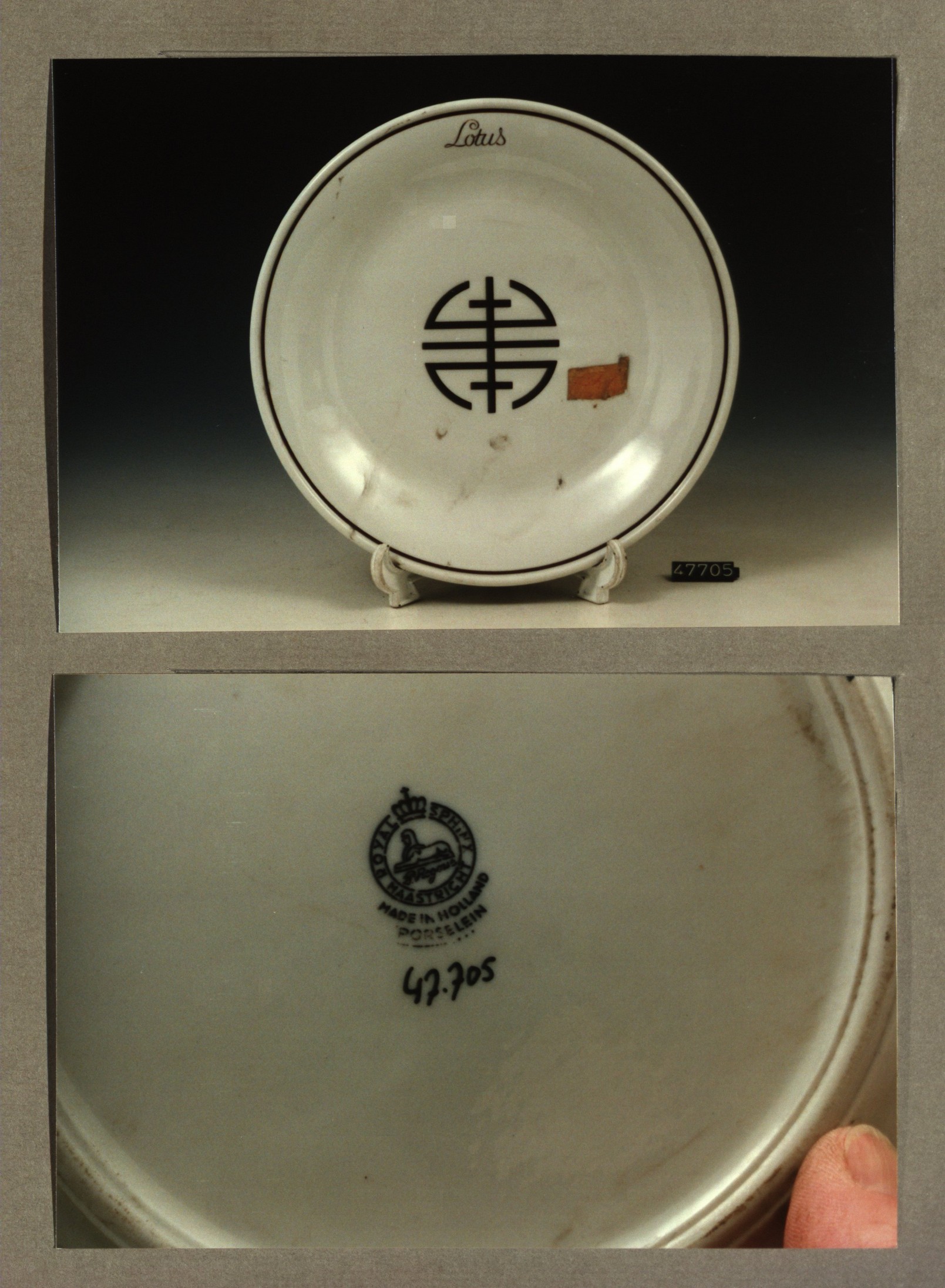 Plat bord, model H met decor Lotus