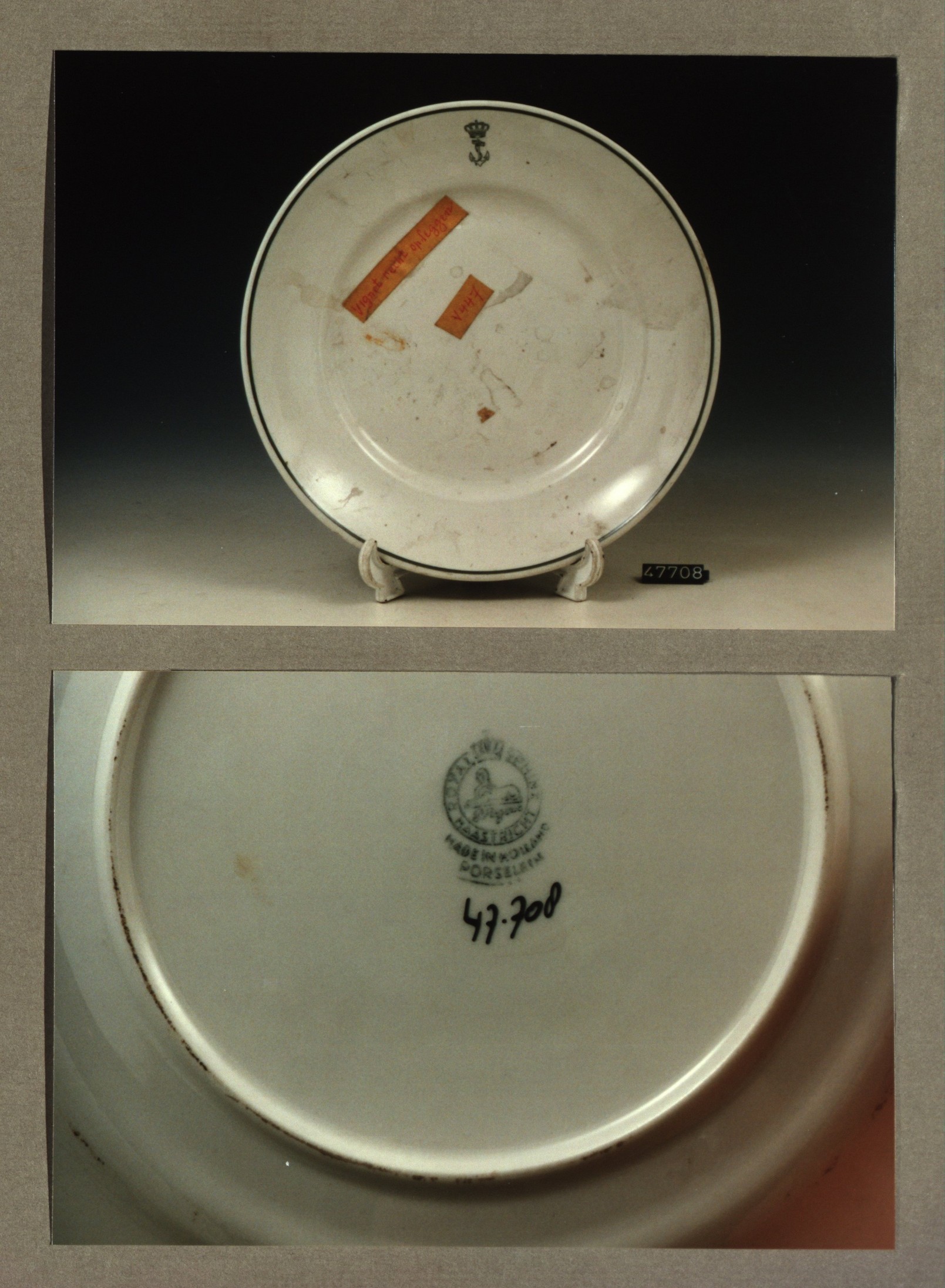 Plat bord, model P met decor Nederlandse handelsmij....