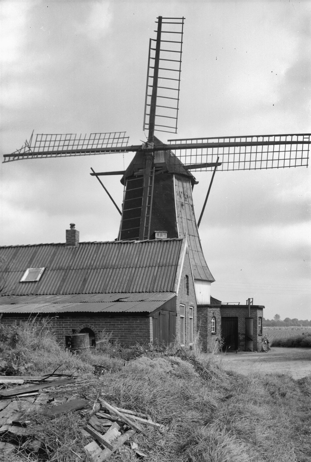 Achtkante stellingmolen in vervallen staat gedeeltel...
