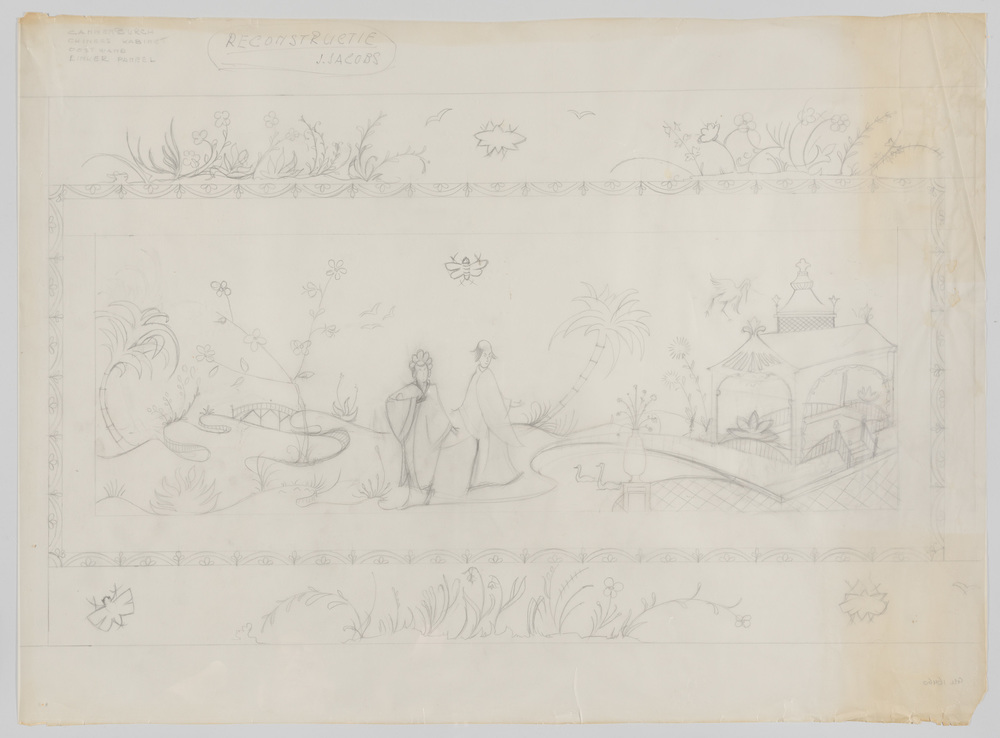 Chinoiserie voorstelling op de ooswand van het kabin...