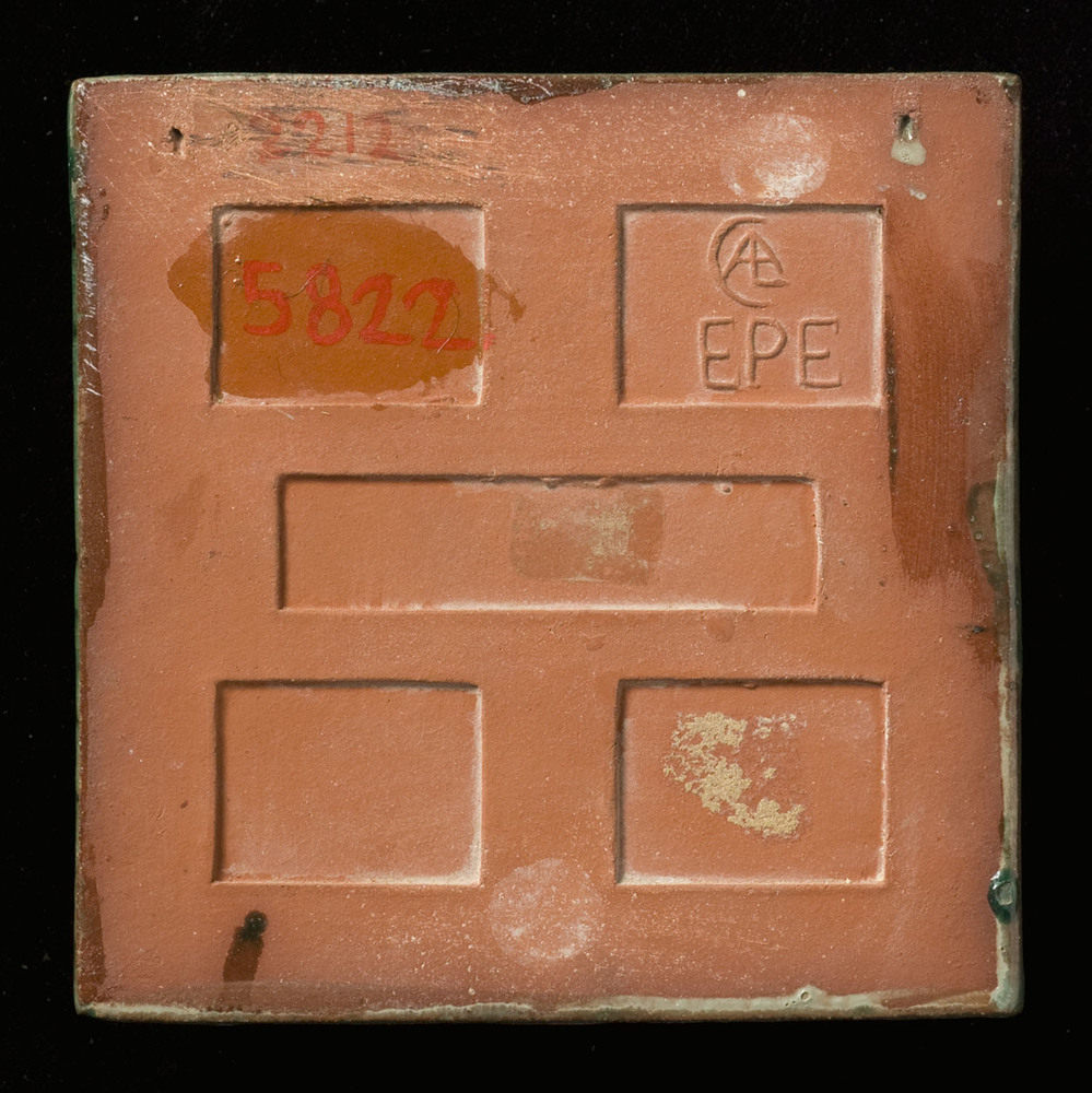 Tegel van keramiek, onderglazuur, voorstellende een ...