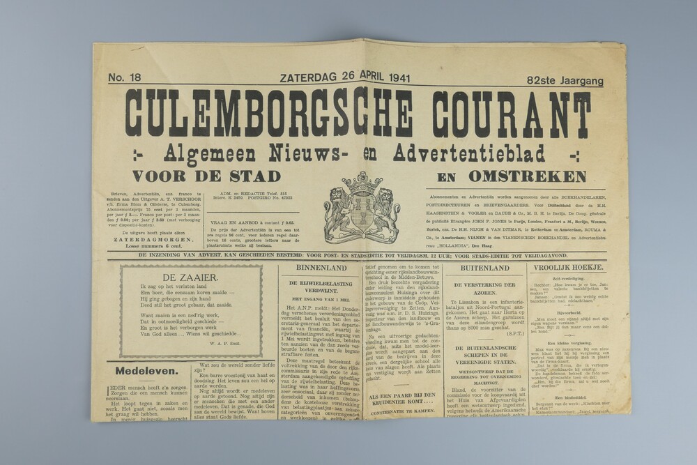 Culemborgsche Courant gedrukt door uitgever A.T. Ver...