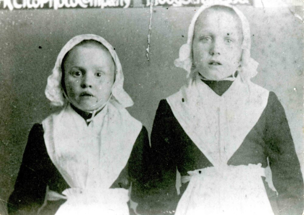 Foto, voorstellende twee weesmeisjes uit het Elisabe...
