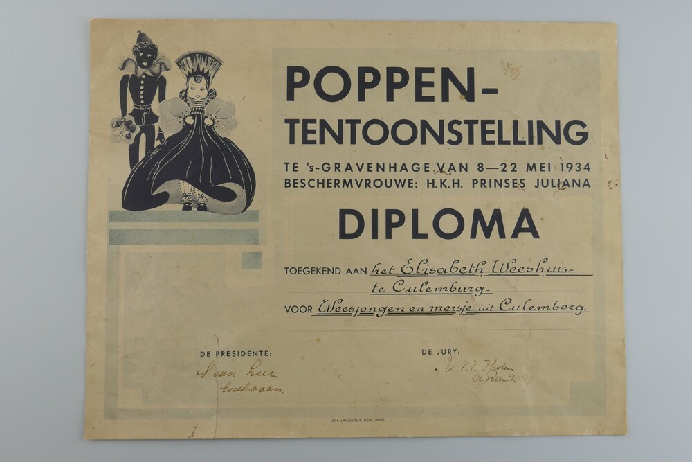 Diploma van Poppen-tentoonstelling, 8 - 22 mei,1934,...