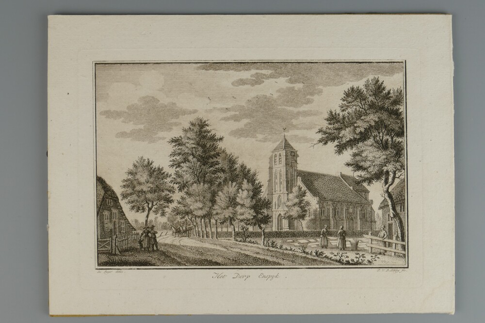 Gravure voorstellende Het Dorp Espijk, naar een teke...