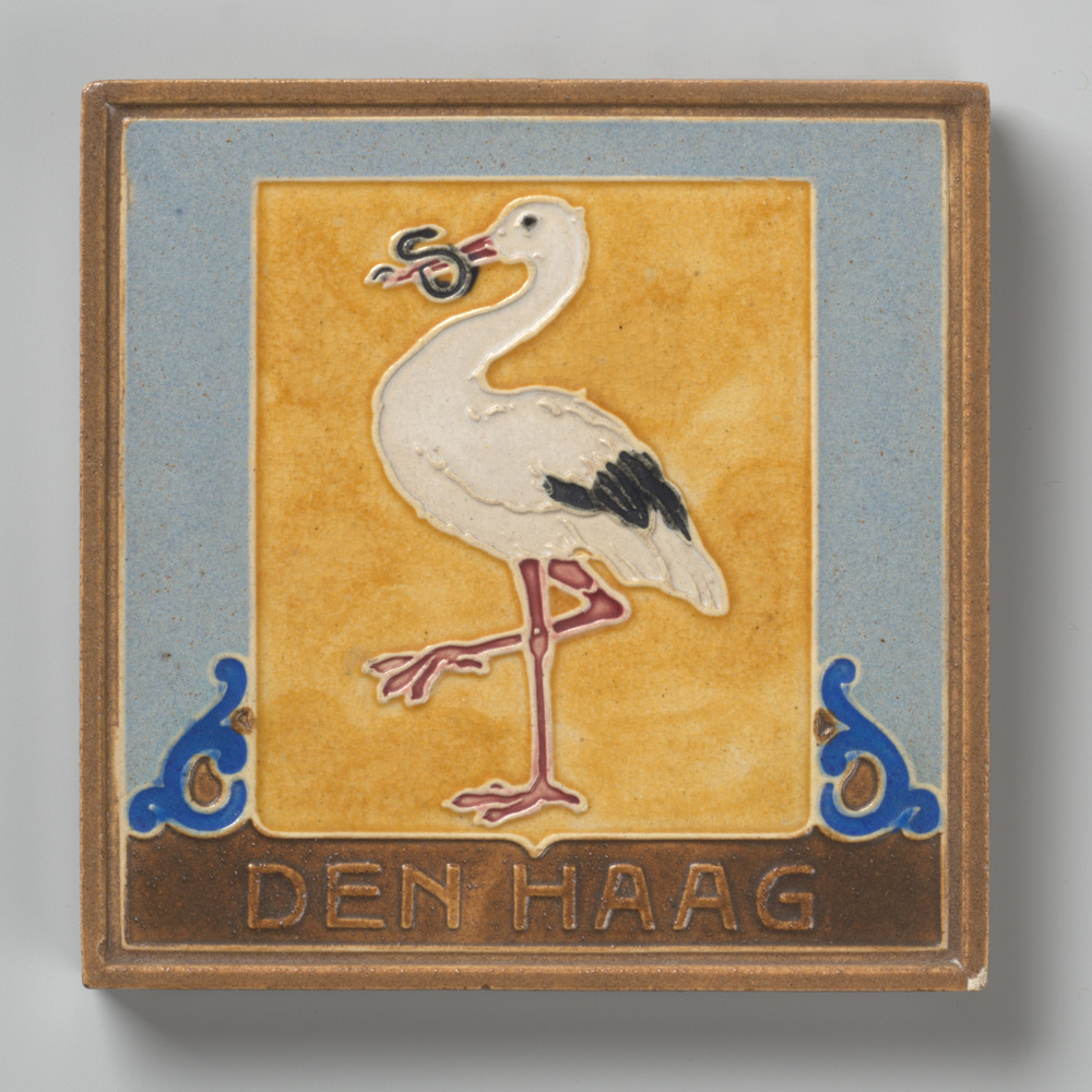 Tegel in cloisonné-techniek, met voorstelling: wapen...