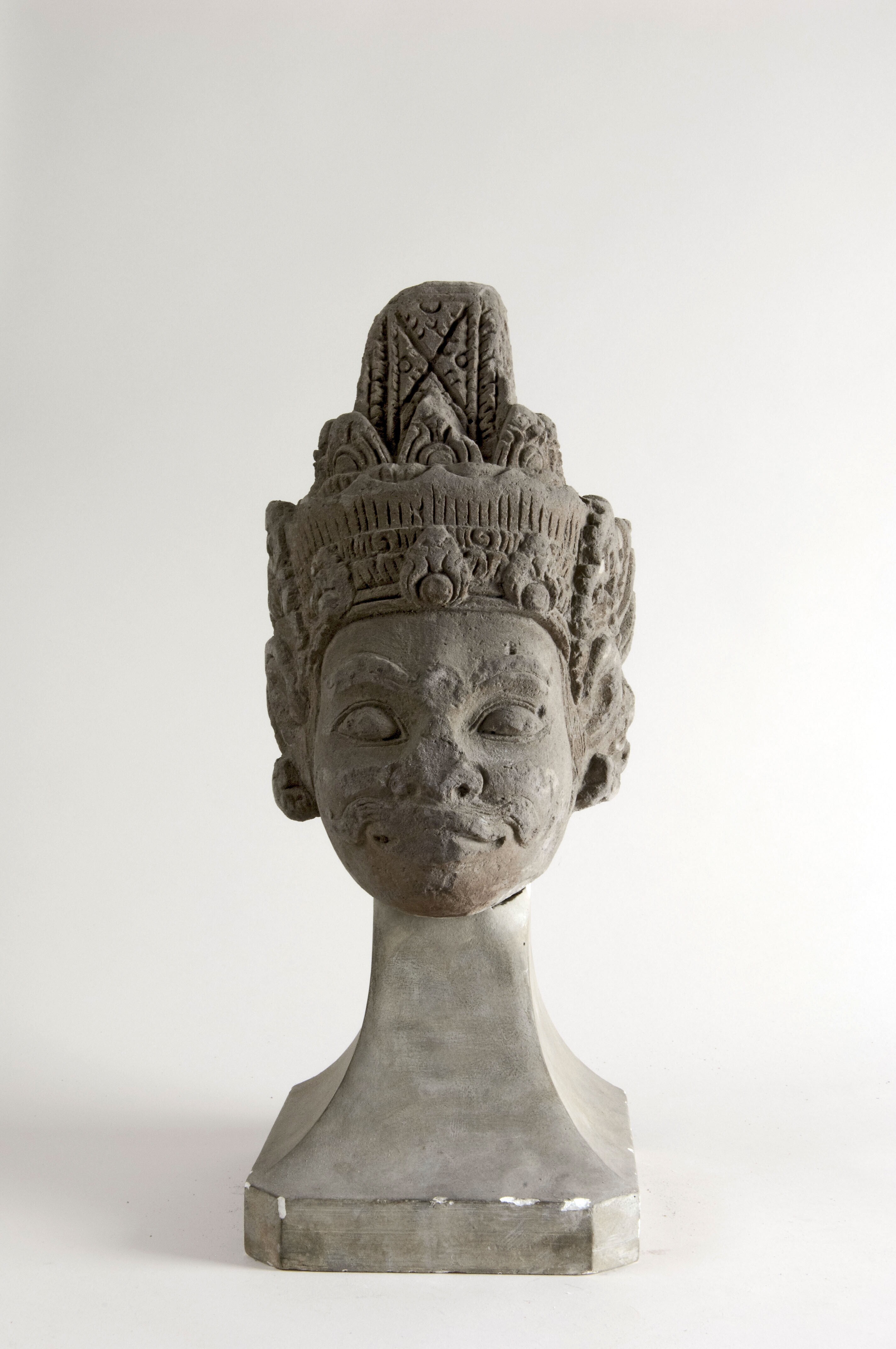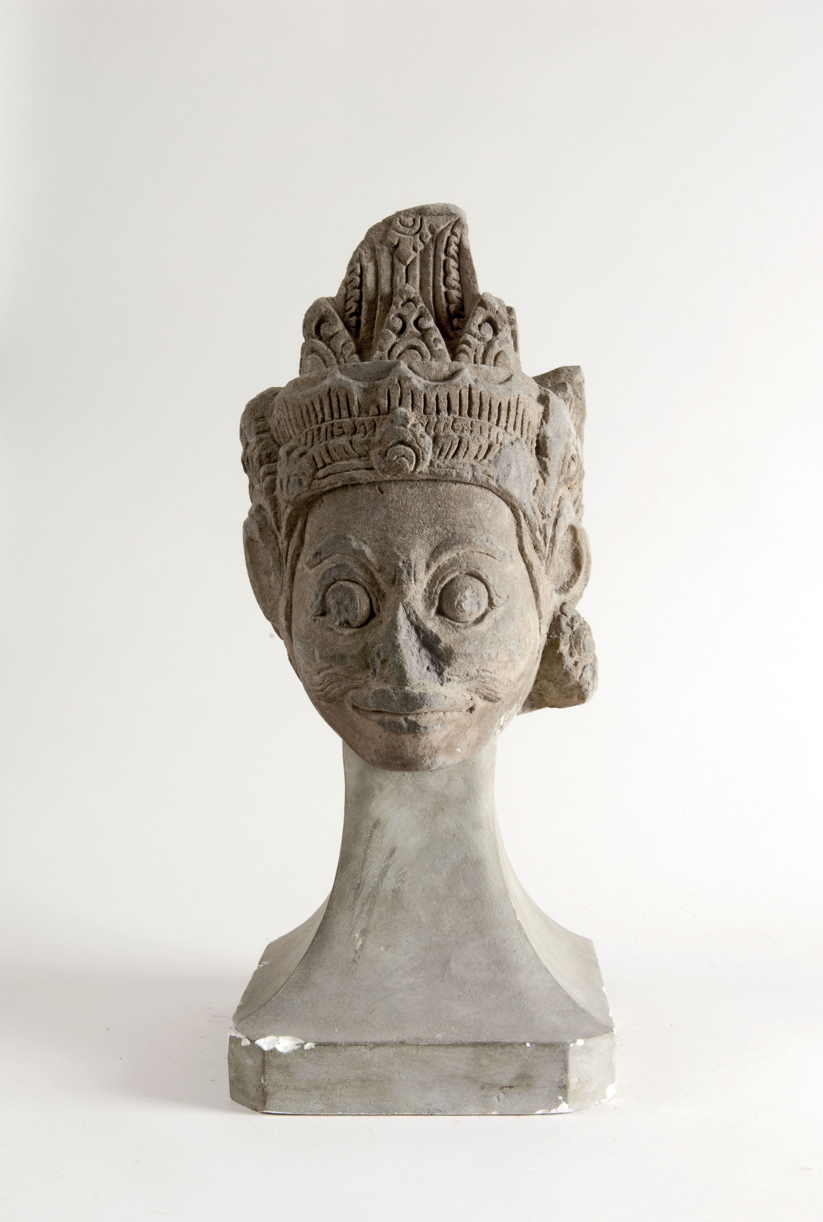 Hoofd van lichtgrijze tufsteen