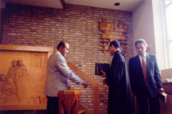 Ds. Nanuruw (rechts) verlaat de preekstoel